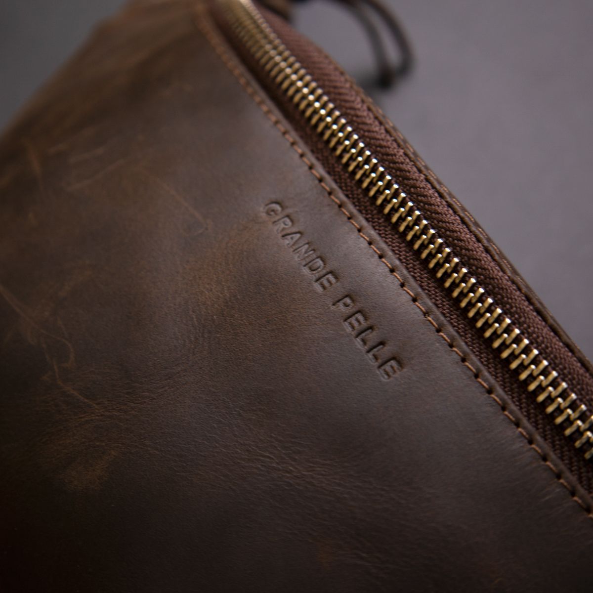 Бананка у вінтажній шкірі Grande Pelle 11154 коричнева