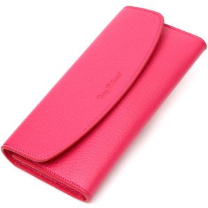 Незвичайно яскравого кольору жіночий гаманець із натуральної шкіри флотар, для якої характерна міцність, зносостійкість та зерниста фактура. Аксесуар складається з одного широкого відділення для купюр, дванадцяти осередків для пластикових карток, однієї прилеглої кишені та монетниці на блискавці. У виробі використано якісну фурнітуру золотистого кольору. Закривається гаманець клапаном на кнопку. Купуючи цей шкіряний гаманець, Ви не тільки набуваєте стильної речі, але й отримуєте якісний аксесуар, який прослужить не один рік.