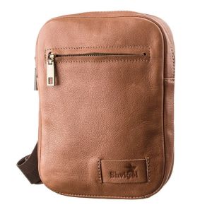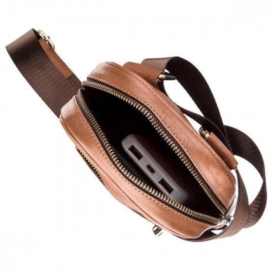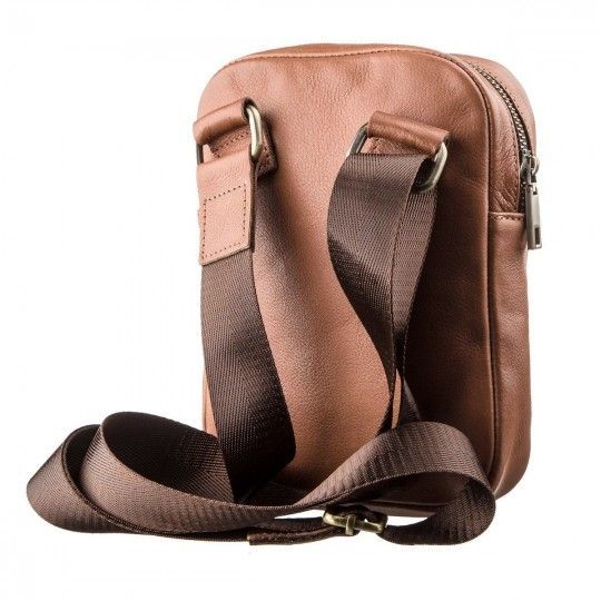 Маленька та компактна сумка на кожен день. Шкіряна сумка з мінімальним дизайном для чоловіків, які цінують мінімалізм та якість. Модель виконана з натуральної шкіри найвищої якості. На лицьовій стороні тиснений логотип бренду зі світлим рядком. Червона текстильна підкладка усередині сумки додає оригінальності моделі. Сумка має незнімний текстильний ремінець коричневого кольору.