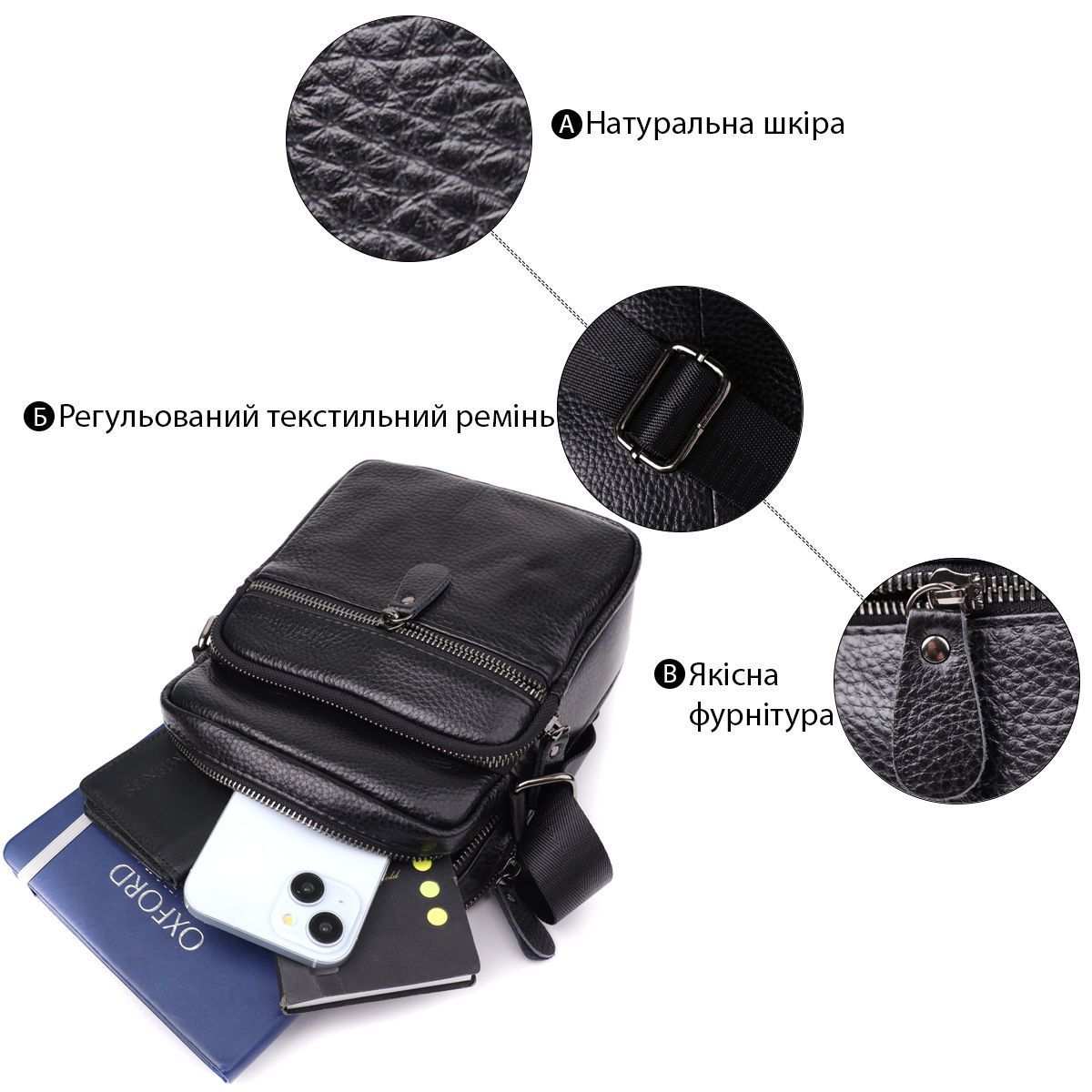 Чоловіча сумка на плече з натуральної шкіри Vintage 23020 чорна