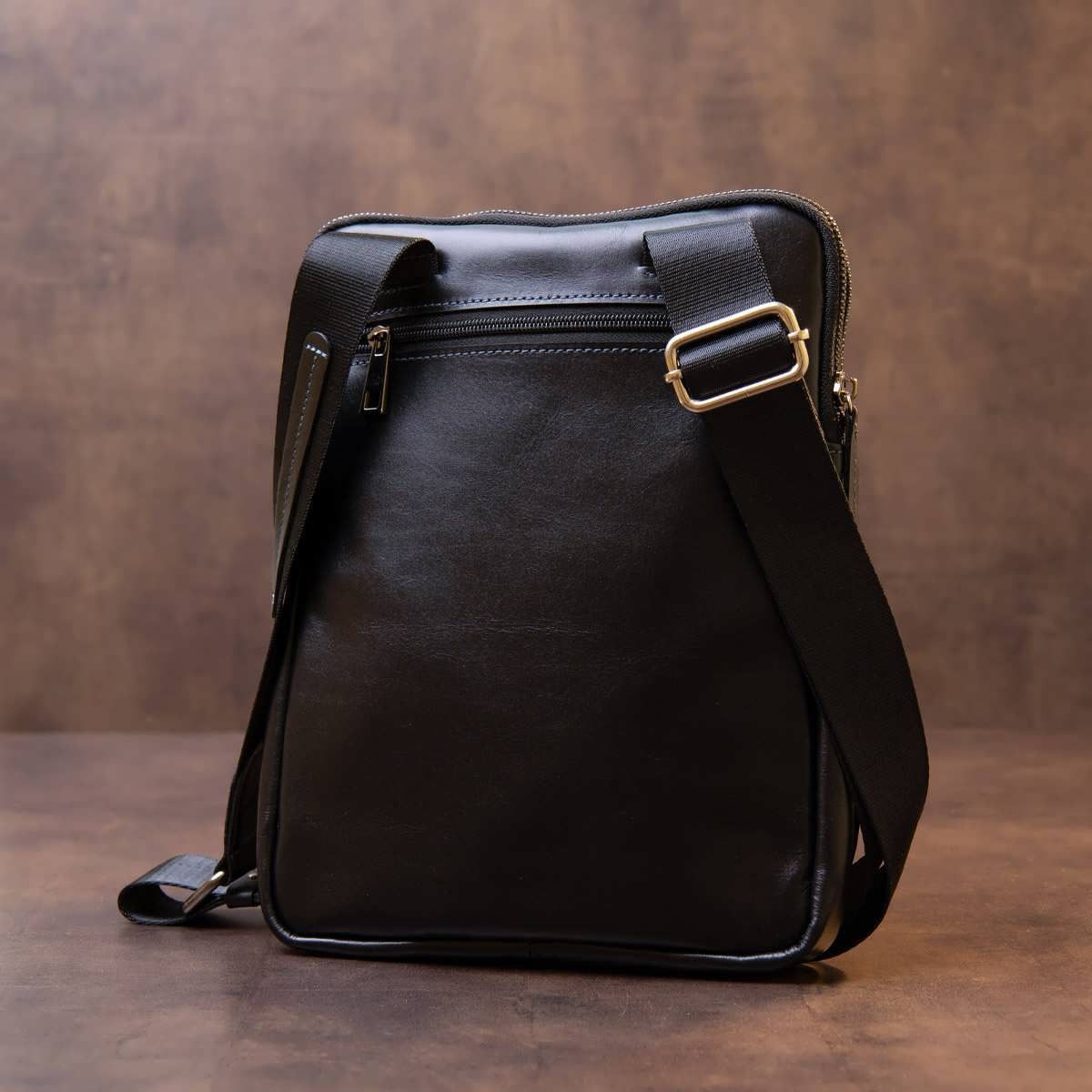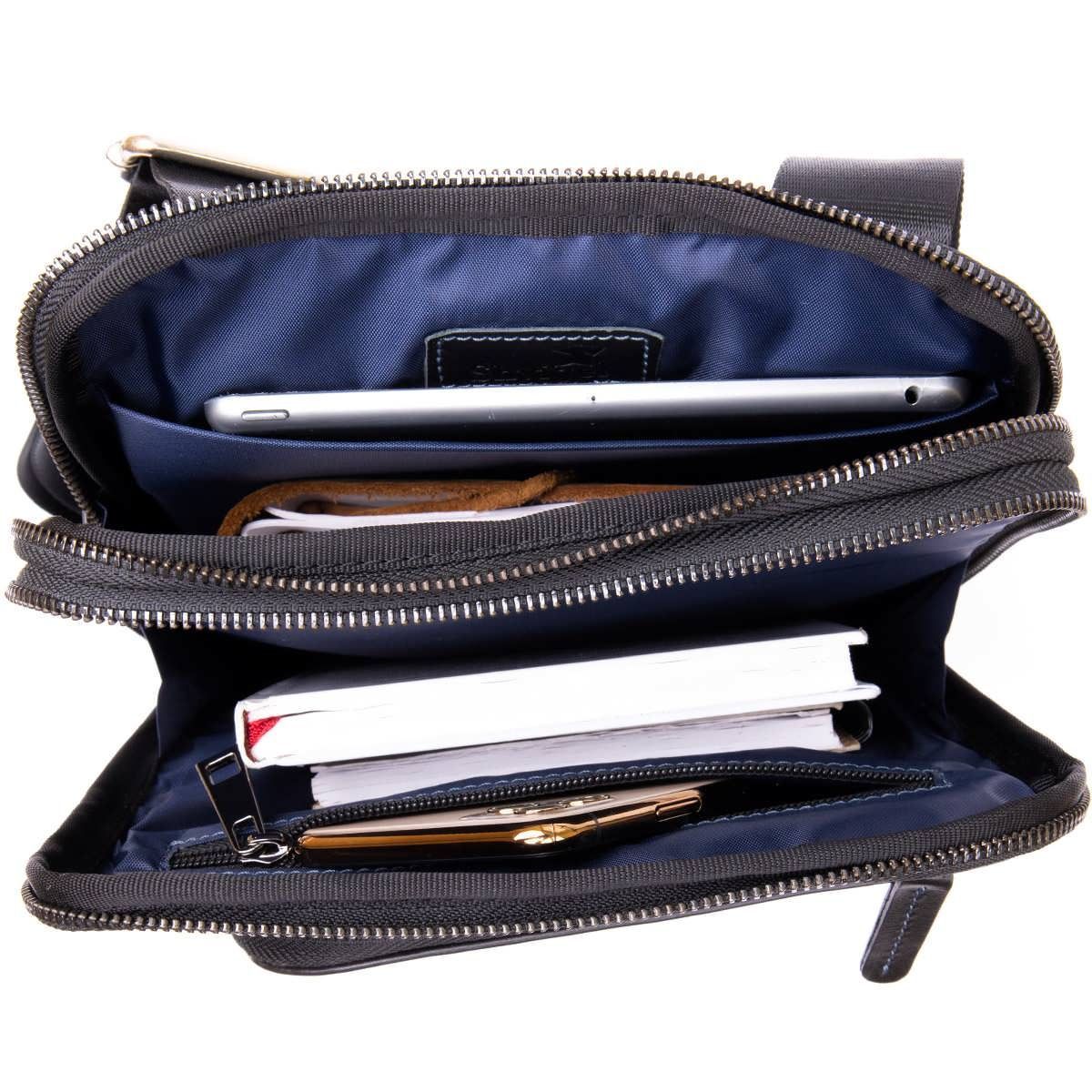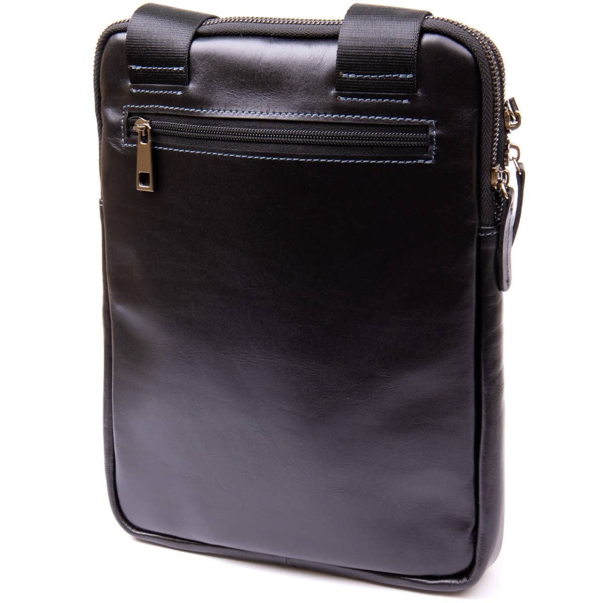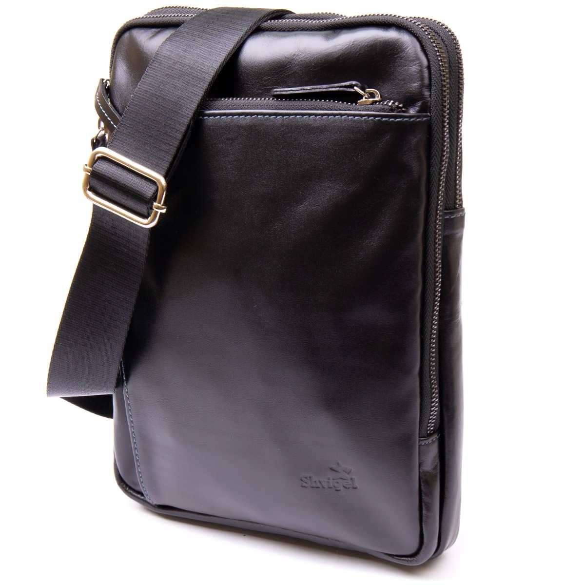 Чоловіча сумка планшет з накладною кишенею на блискавці в гладкій шкірі 11281 SHVIGEL чорна