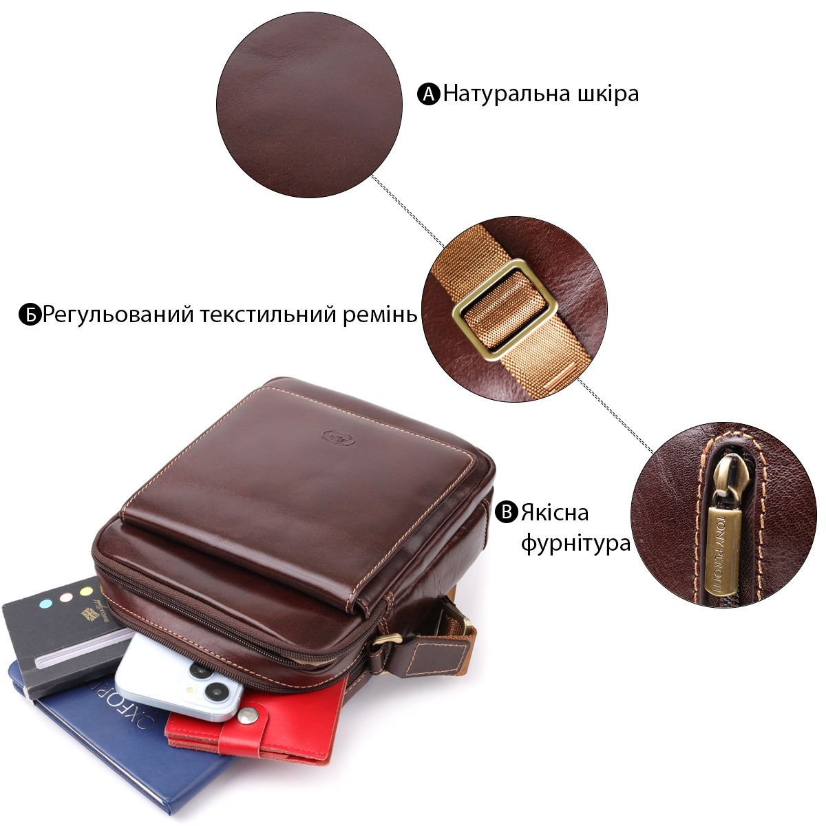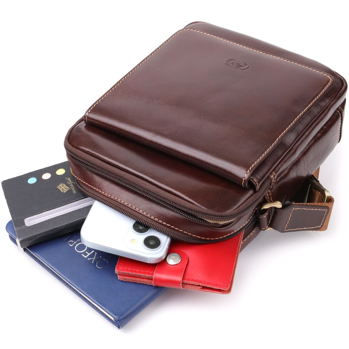 Чоловіча сумка з кишенями з гладкої натуральної шкіри Tony Perotti 20856_1 (9148-17 moro) коричнева