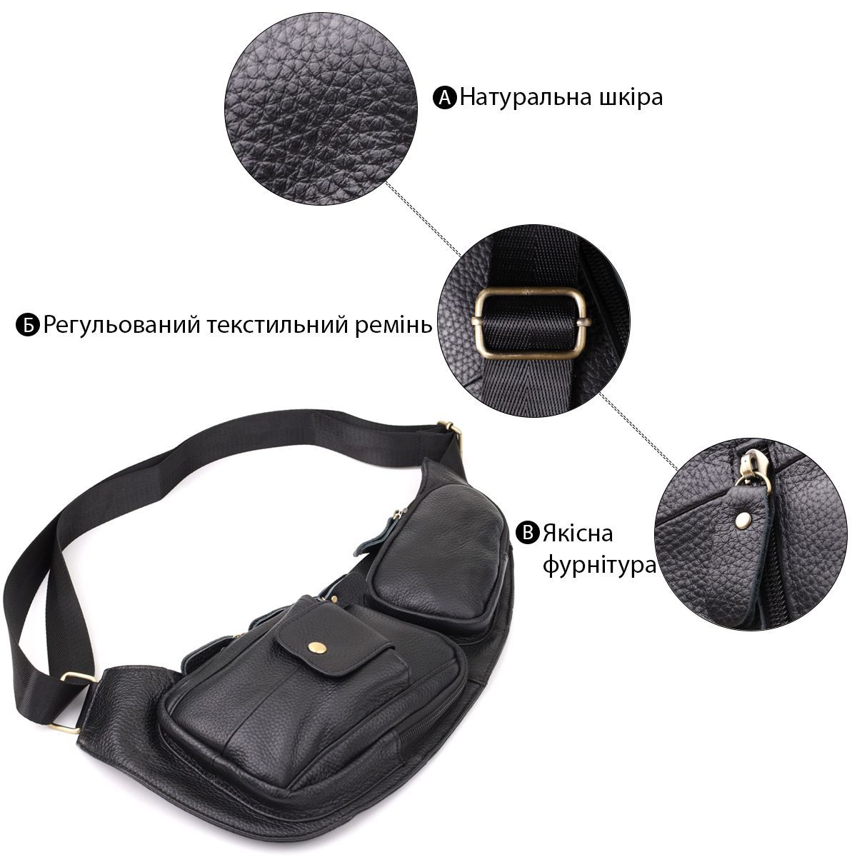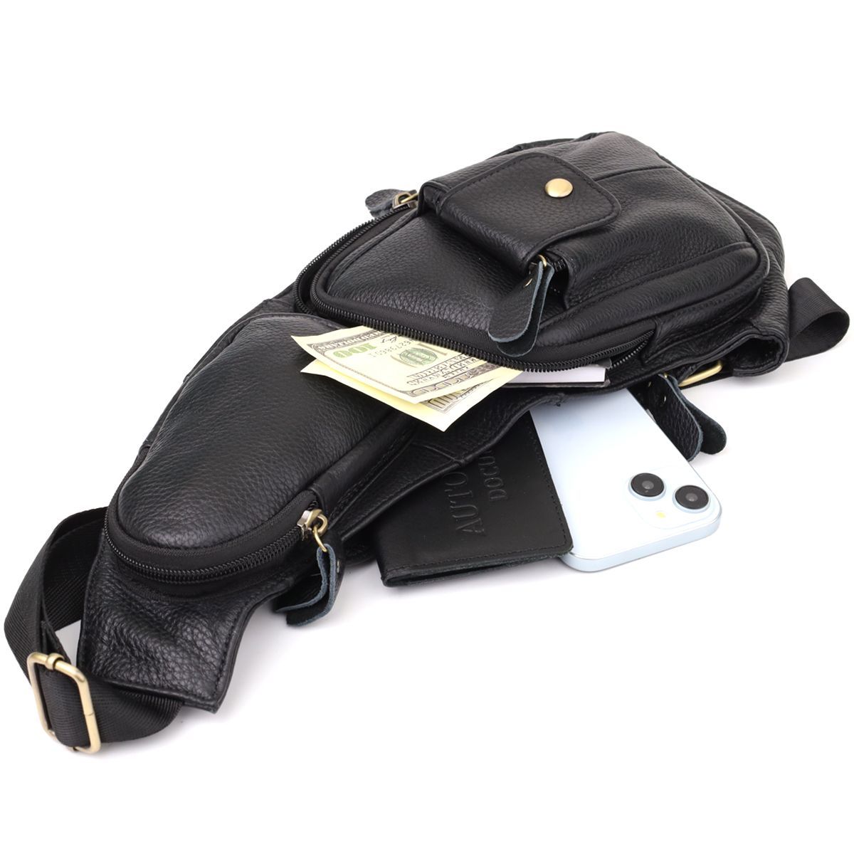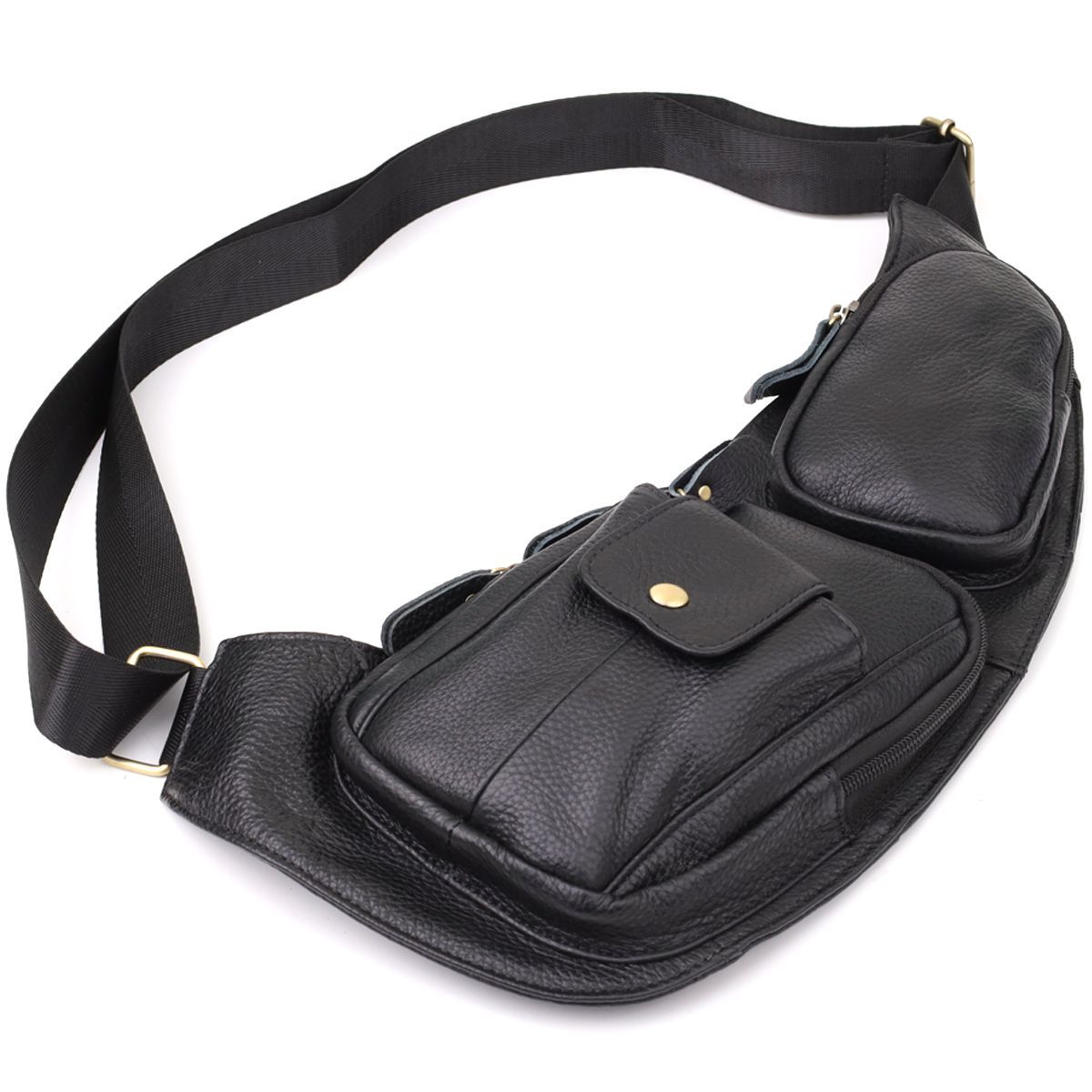 Чоловіча сумка з великою кількістю кишень із натуральної шкіри Vintage 22961 чорна