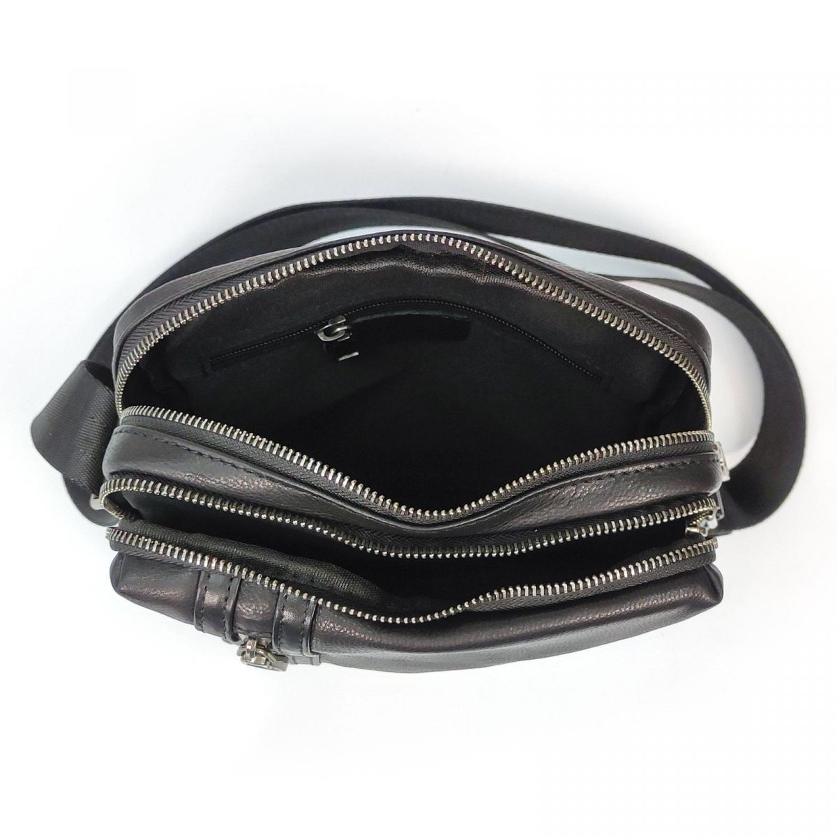 Чоловічий месенджер Tiding Bag S-JMD10-8153A виготовлений із натуральної шкіри чорного кольору. Особливості: розміри сумки становлять 23 х 26 х 6 см. Месенджер має два відділення, які закриваються на блискавку. Усередині головного відділення є дві невеликі бічні кишені. На лицьовій стороні розташована одна вертикальна кишеня на блискавці з розміром 22х15 см. З заднього боку є кишеня на блискавці розміром 15х19 см. Месенджер добре тримає форму. Підкладка – текстиль. Текстильний плечовий ремінь регулюється по довжині, в діапазоні 70-140 см, незнімний. Колір чорний. Колір фурнітури: темне срібло.