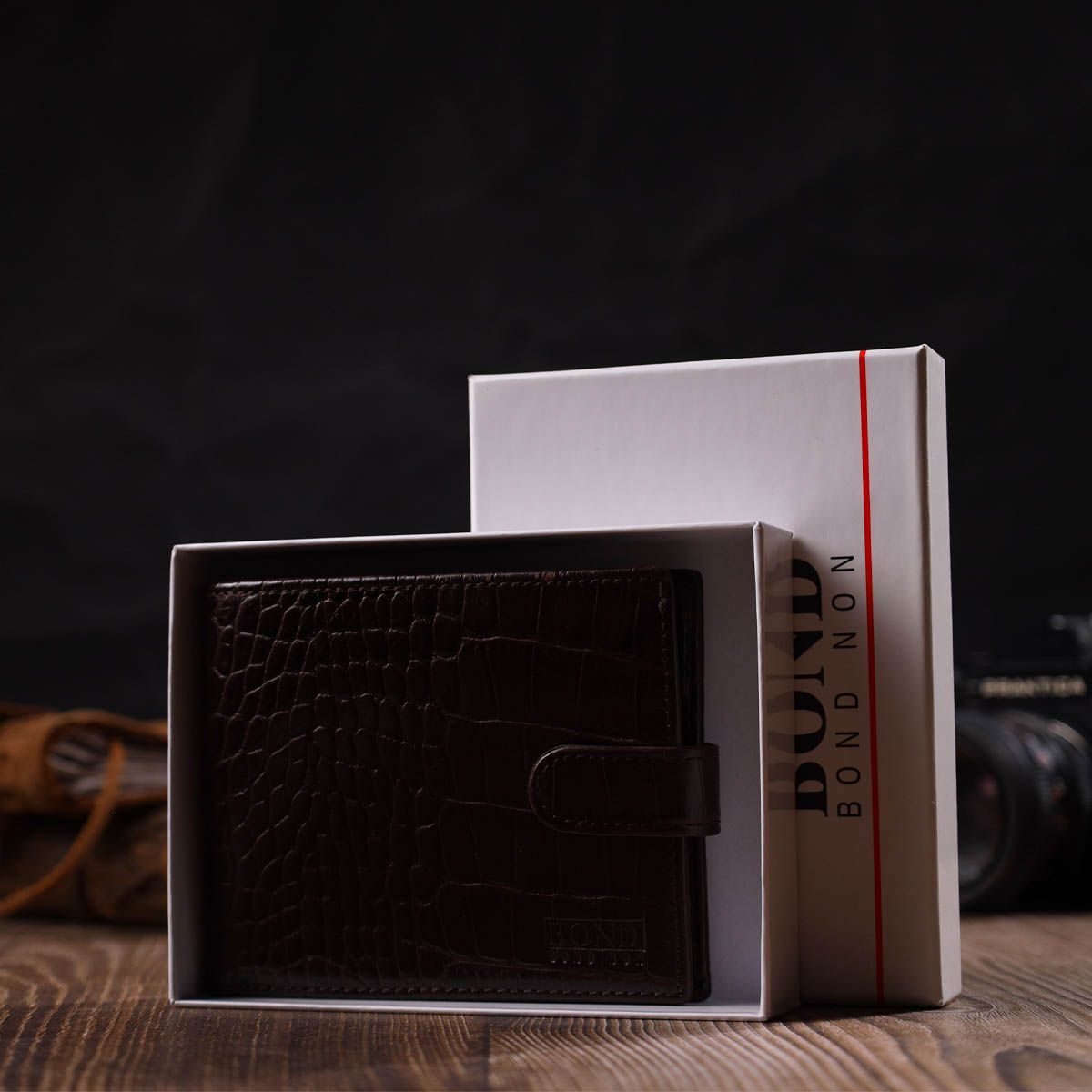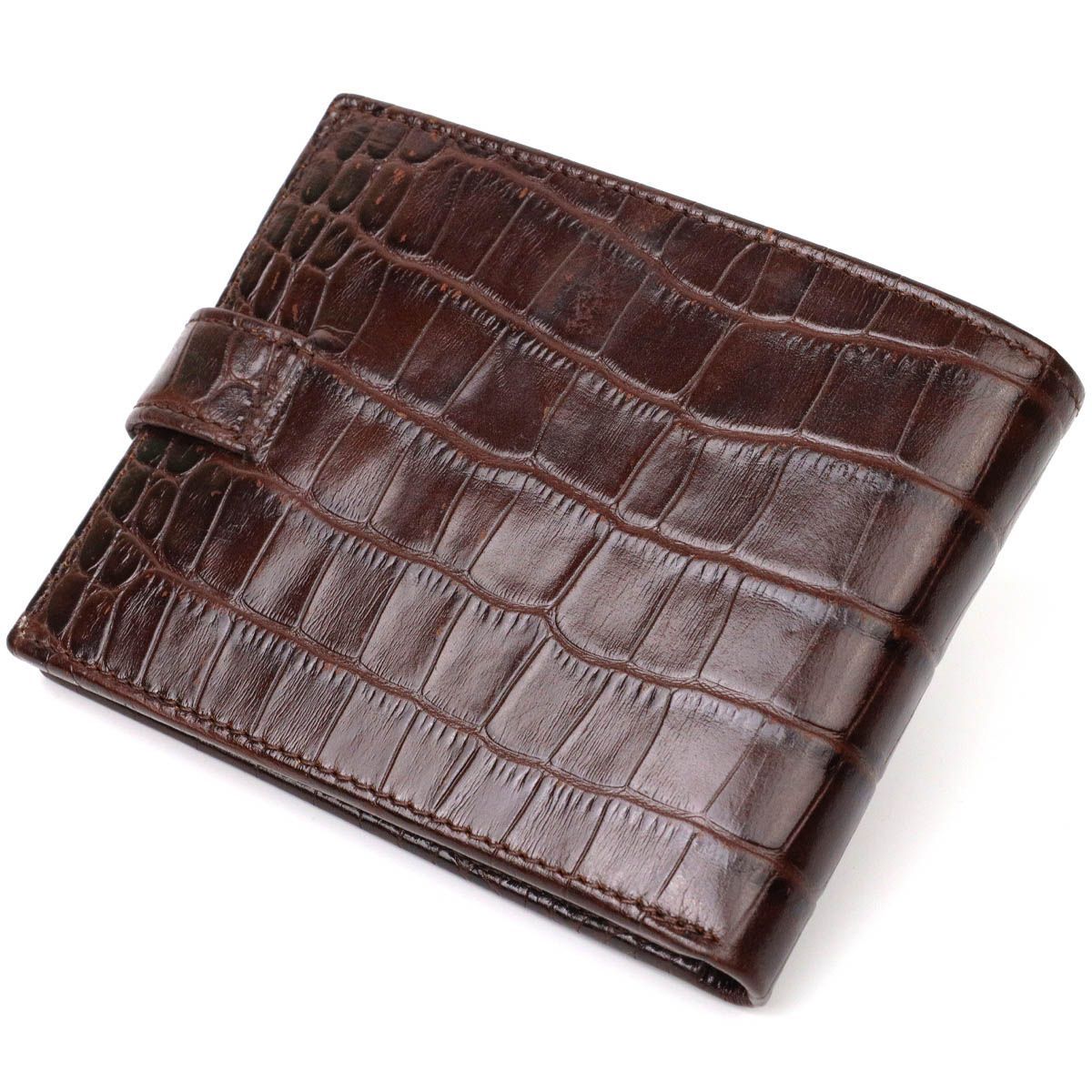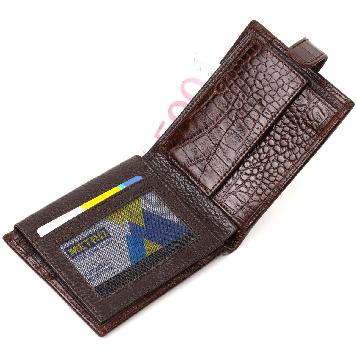 Чоловічий фактурний горизонтальний гаманець з натуральної шкіри з тисненням під крокодила Tony Bellucci 22043 коричневий