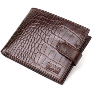 Стильне чоловіче портмоне з натуральної шкіри горизонтального типу з тисненням під крокодила. У цей аксесуар чудово поміщаються купюри всіх номіналів. Виріб складається з трьох відділень для купюр, трьох осередків для кредиток, трьох прихованих кишень, двох відділень під сіткою та монетниці. Закривається гаманець навпіл шкіряним хлястиком на кнопку. Вироби з натуральної шкіри завжди будуть чудовим подарунком для близької людини.