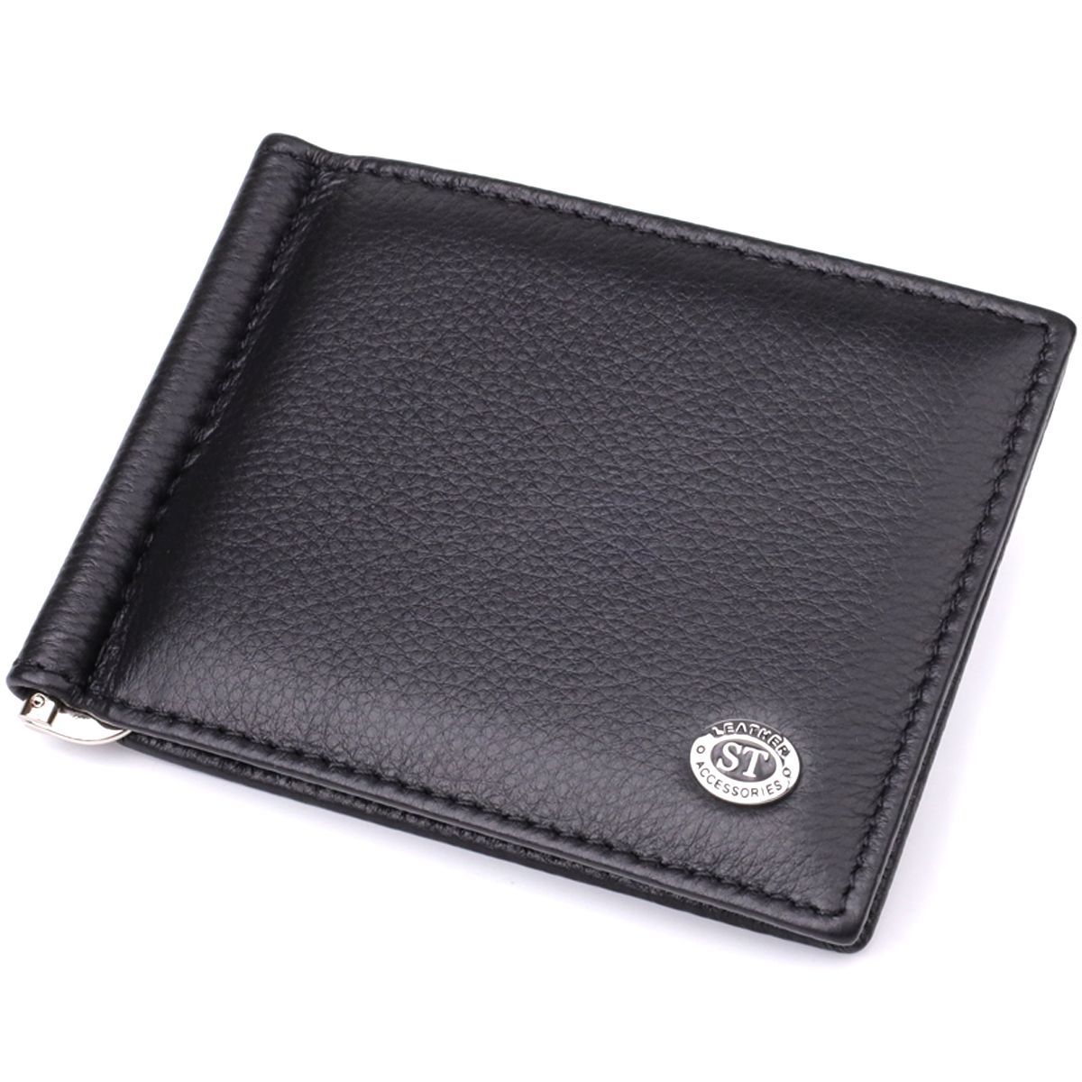 Чоловічий гаманець із металевим затискачем з натуральної шкіри ST Leather 23092 чорний
