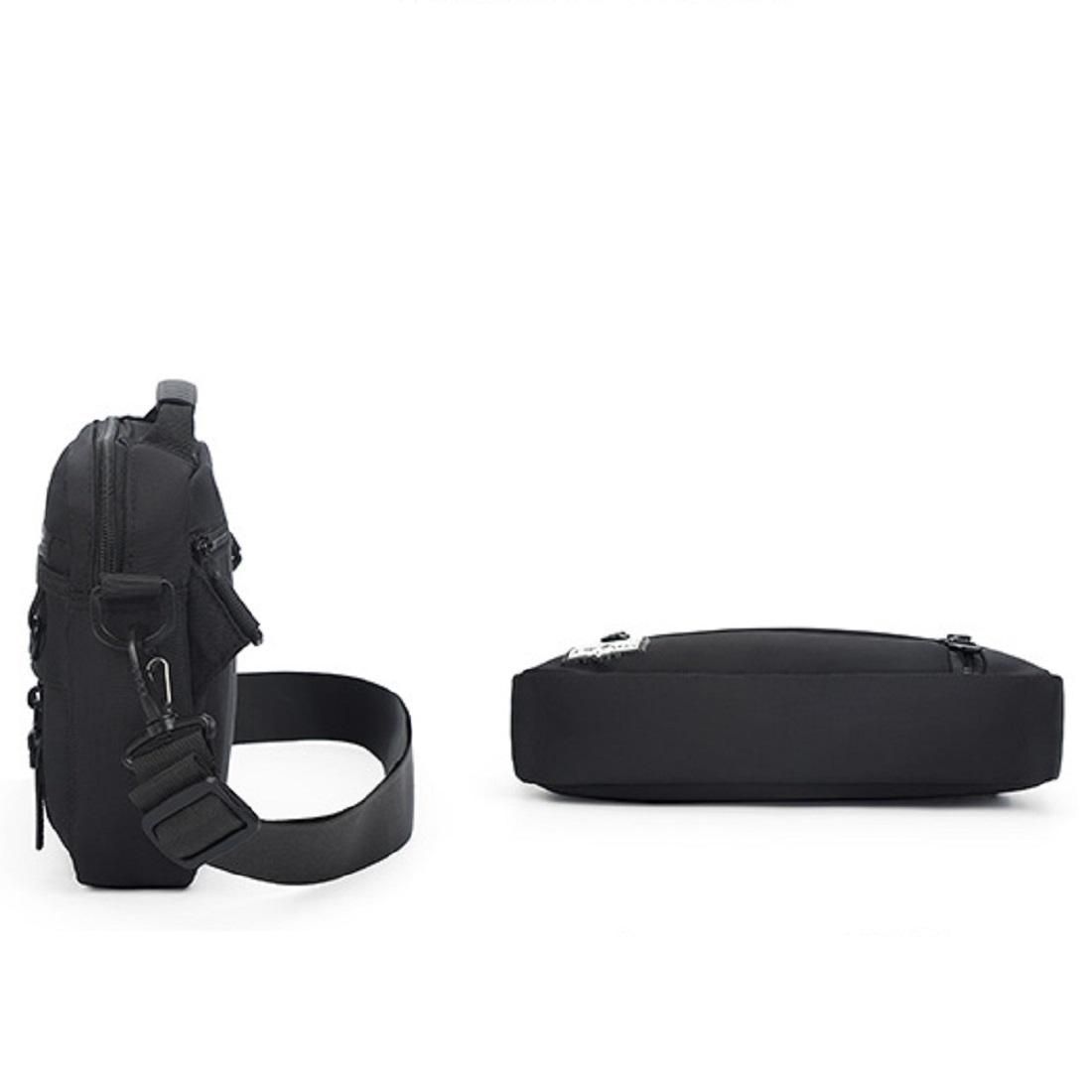 Чоловіча сумка через плече Confident AT09-T-23356A пошита із міцного текстилю у чорному кольорі. Розміри: 22 x 15 x 6см. Сумка має одне основне відділення. З лицьового боку є дві додаткові кишені на блискавках різних розмірів, і одна з тильного боку. Усередині основного відділу також є невеликі кишеньки для дрібниць. Наплічний текстильний ремінь, регулюється по довжині, знімається за допомогою карабінів. Є додаткові кріплення, що дозволяють перестебнути ремінець на задню спинку виробу та носити її як поясну сумку. Також модель оснащена короткою ручкою для зручності перноски. Підкладка: текстиль. Колір чорний. Колір фурнітури чорний.