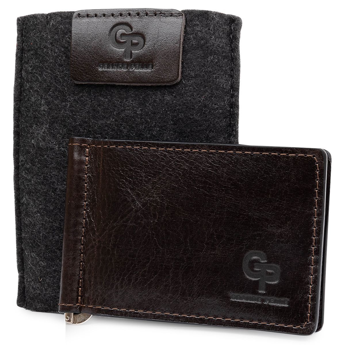 Чоловічий практичний затискач для грошей Grande Pelle 11403 темно-коричневий