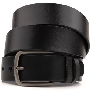 Якісний ремінь для справжніх чоловіків у чорному класичному кольорі. Виріб виконаний із натуральної шкіри. Доповнено модель сріблястою пряжкою затемненою у класичному дизайні. При бажанні ви з легкістю можете відрегулювати довжину ременя; достатньо відкрутити болтик на звороті пряжки і відрізати непотрібний відрізок. Вся процедура триватиме близько 5 хвилин. Рекомендуємо вам цей ремінець, якщо ви шукаєте подарунок для чоловіка. За бажання на нашому сайті ви можете замовити подарункову коробку та додати більше інтриги вашому подарунку.