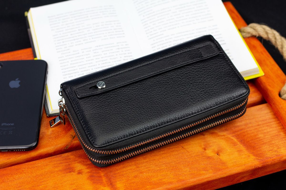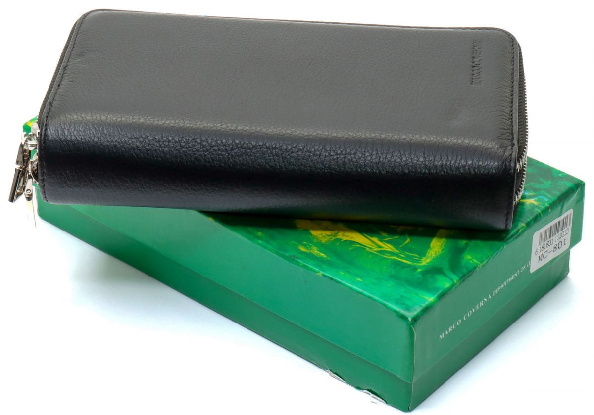 Чорний чоловічий гаманець-клатч на дві блискавки з натуральної шкіри Marco Coverna MC-801