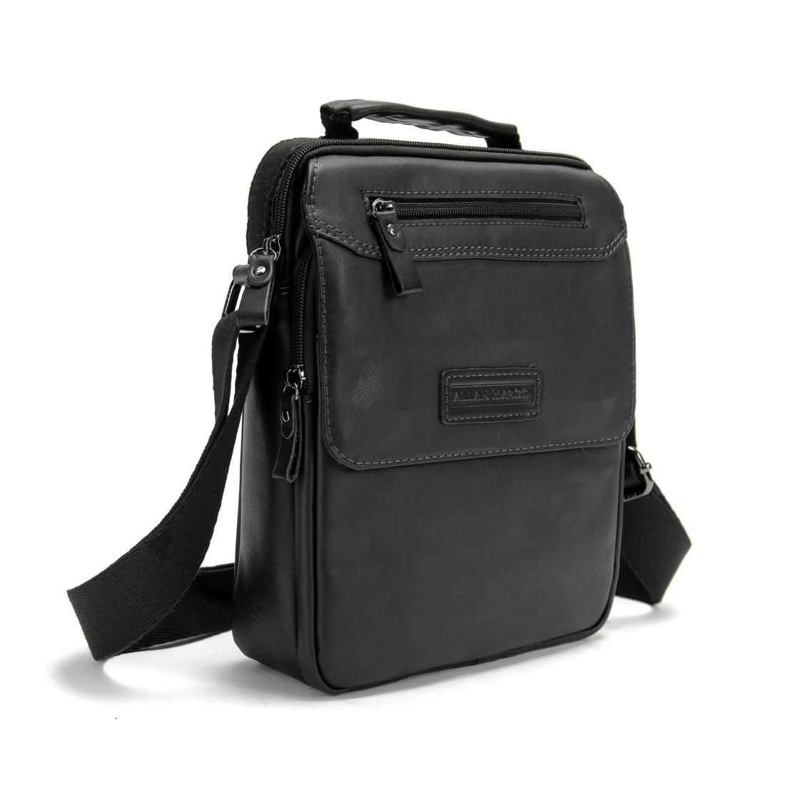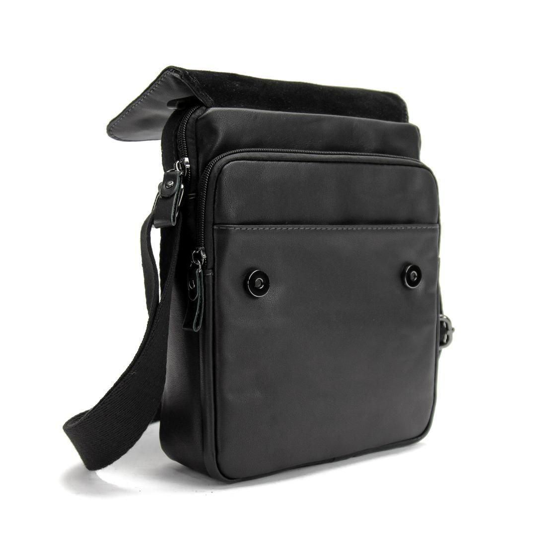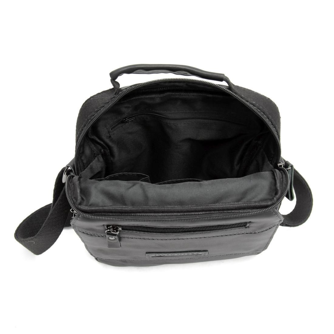 Сумка через плече Ruff Ryder RR-9103A із натуральної шкіри у чорному кольорі, гладка глянсова шкіра. Розмір: 27 x 22 x 7 см. Чоловічі шкіряні сумки чорного кольору. Плечовий ремінь регулюється по довжині. У сумці чотири відділення та одна кишеня. Із заднього боку є кишеня на блискавці. Аксесуар оснащений шкіряною ручкою для перенесення. Підкладка: Текстиль. Колір чорний. Колір фурнітури: срібло.