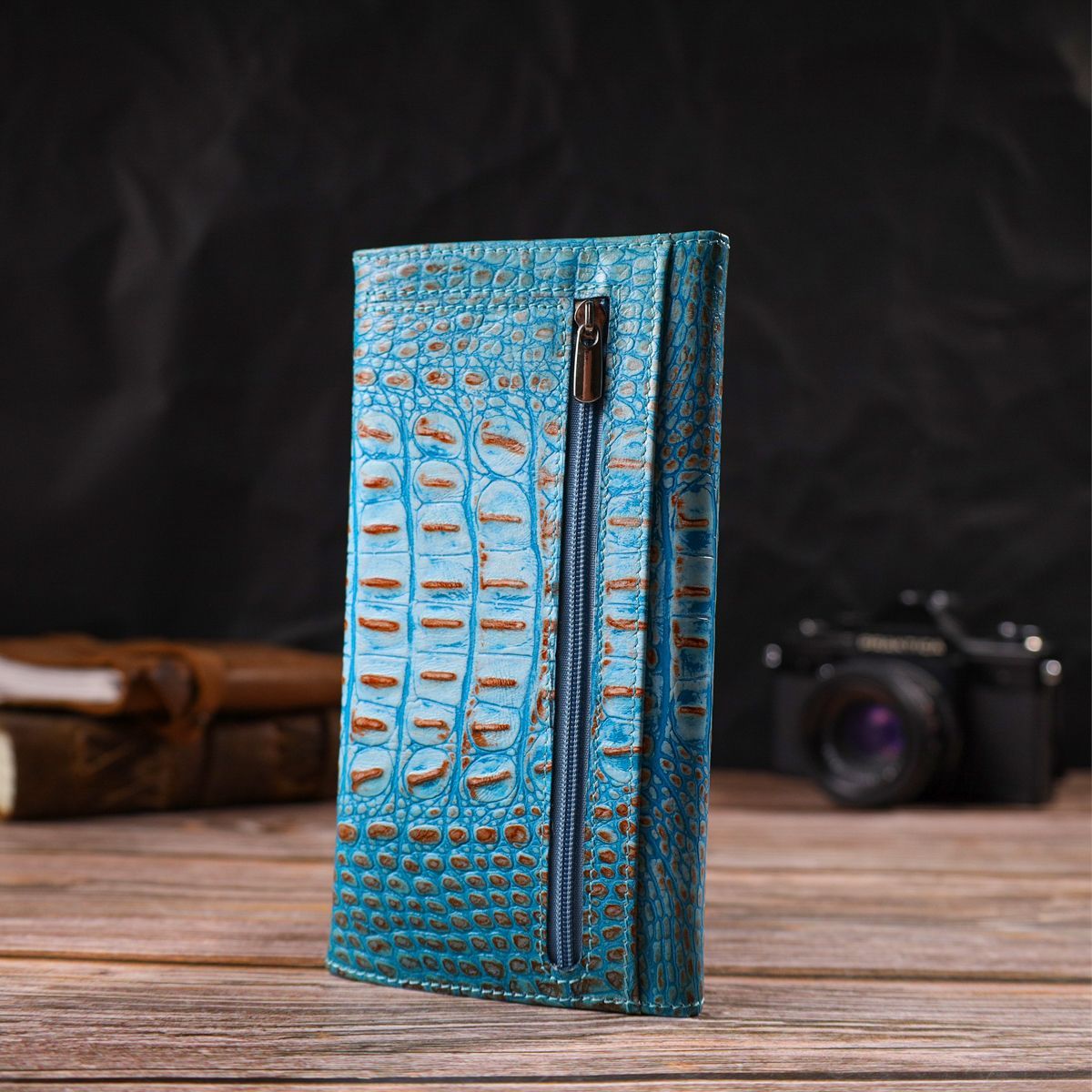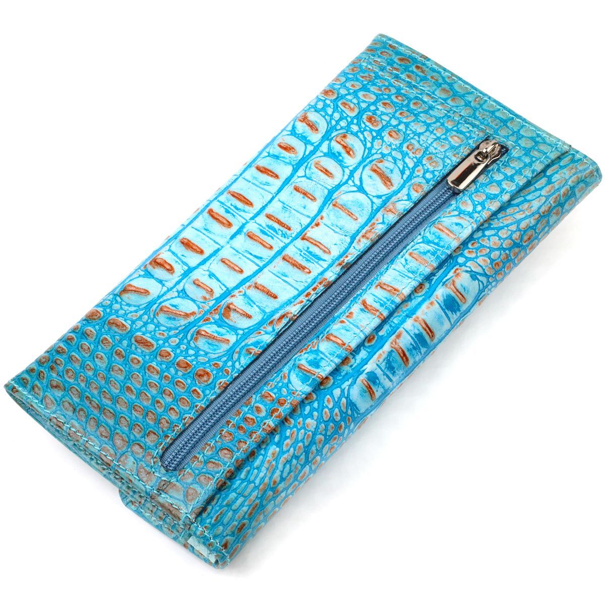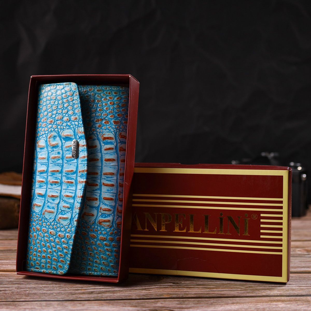 Чудове портмоне для жінок з натуральної шкіри з тисненням під крокодила Canpellini 21703 блакитне