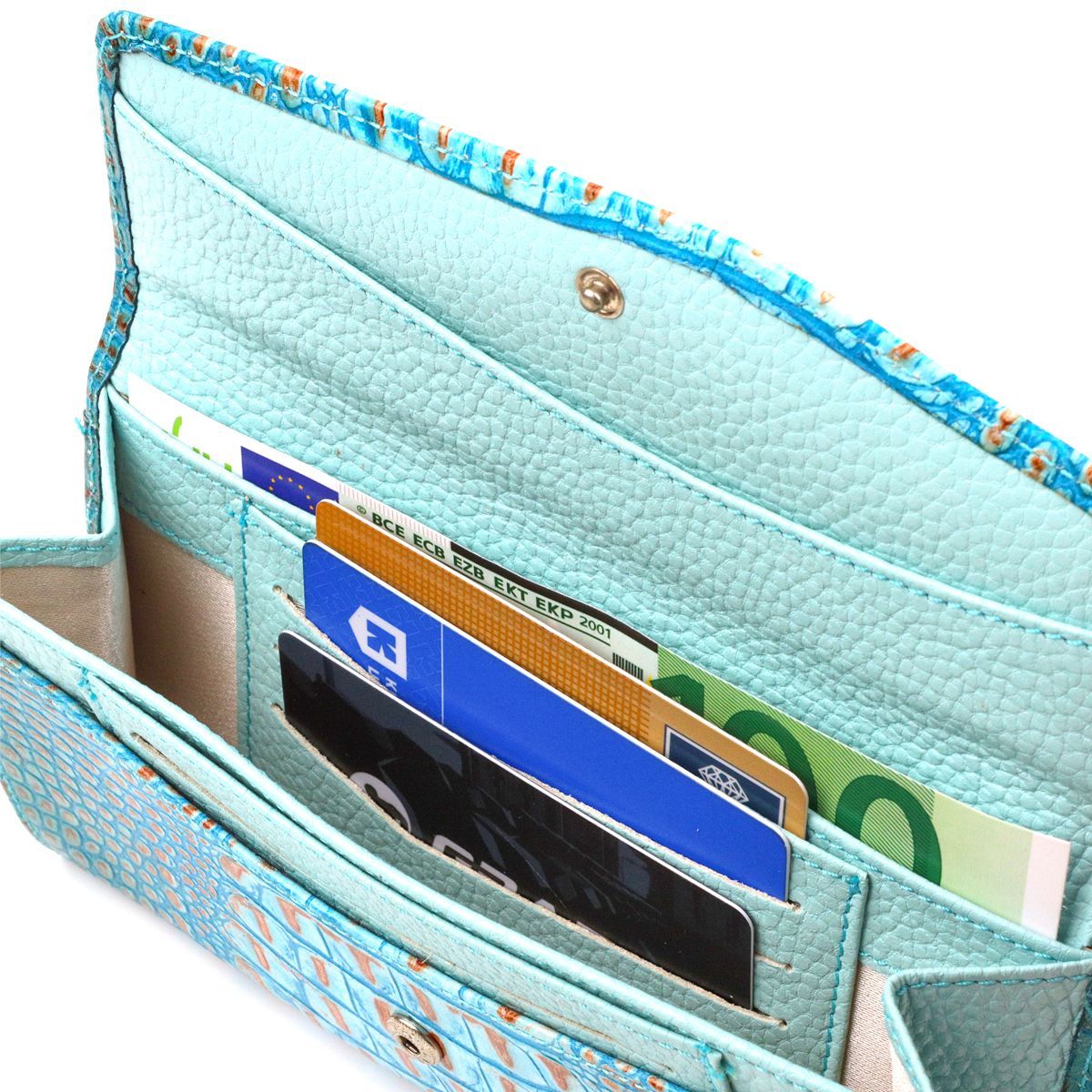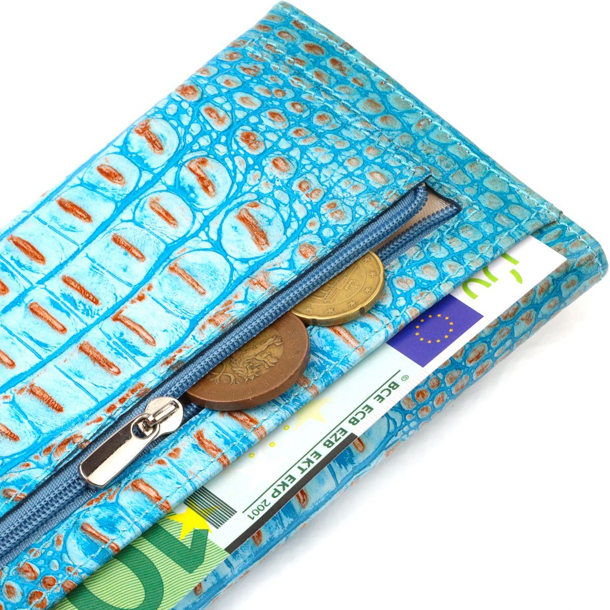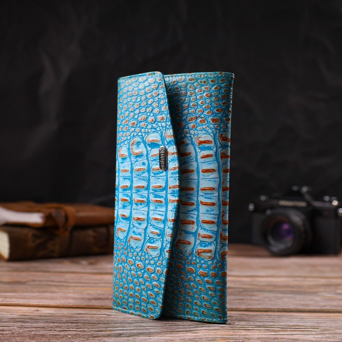Чудове портмоне для жінок з натуральної шкіри з тисненням під крокодила Canpellini 21703 блакитне