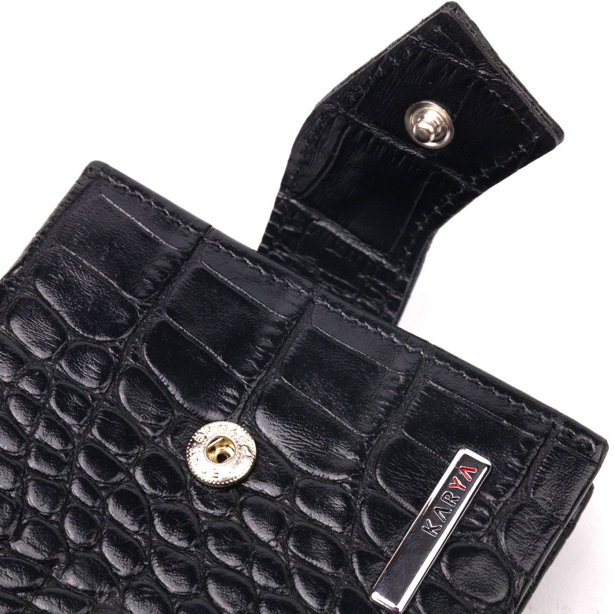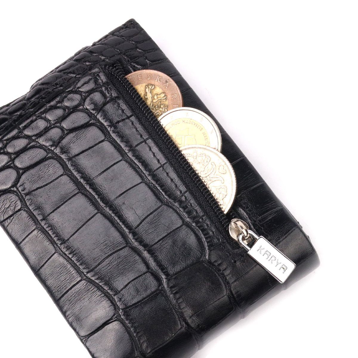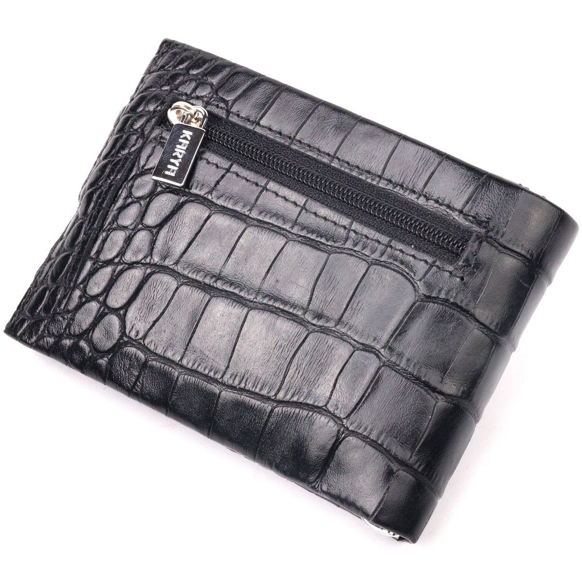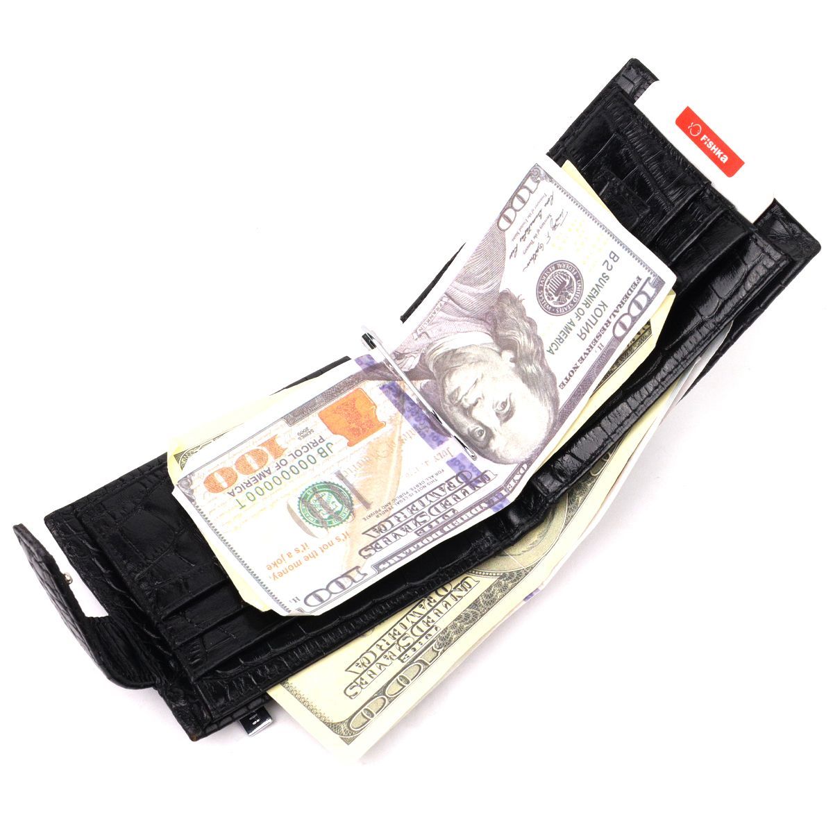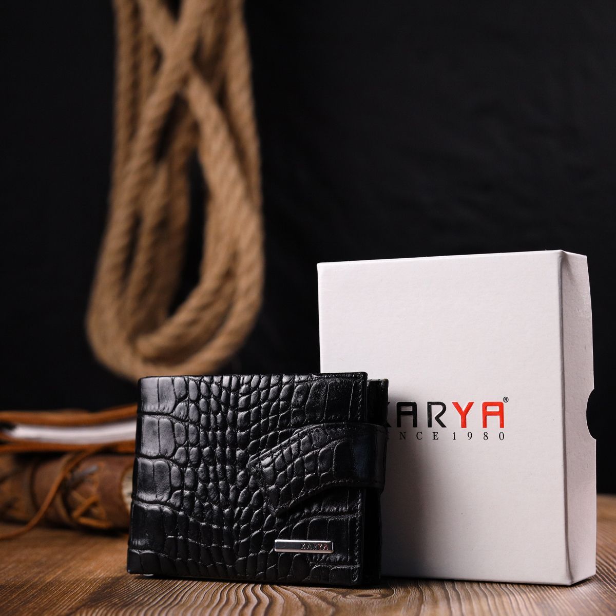 Чудовий чоловічий затиск із натуральної лакованої фактурної шкіри під крокодила KARYA 21043 чорний