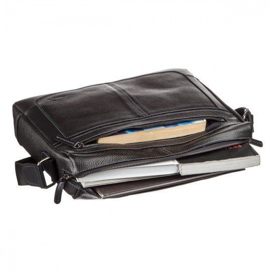 Ділова чоловіча сумка зі шкіри флотар на плече SHVIGEL 11244 чорний