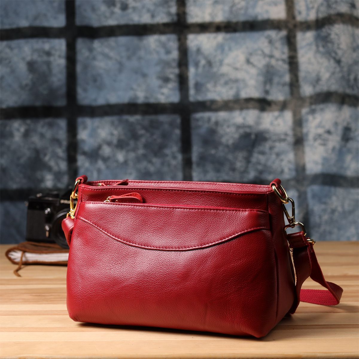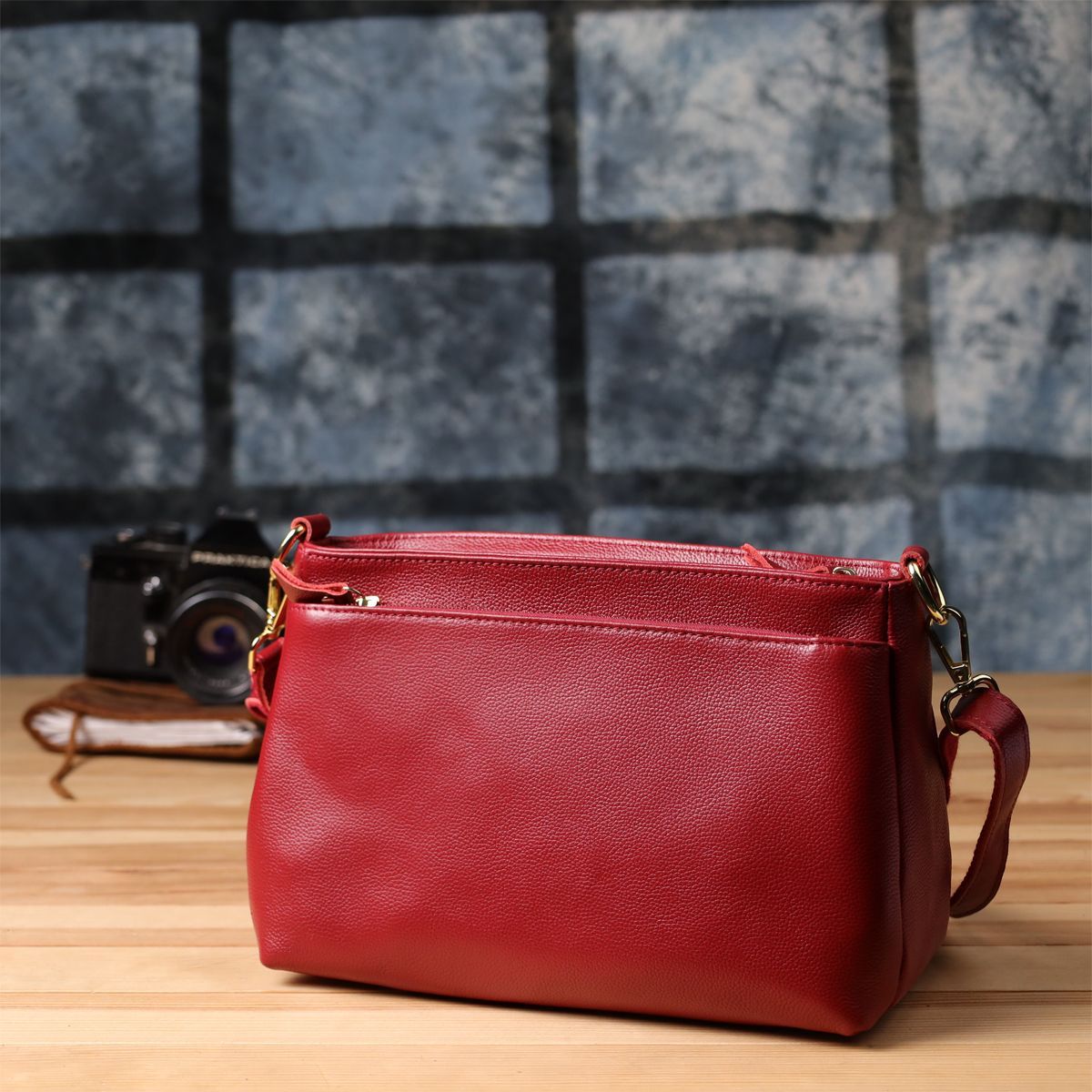 Ця червона шкіряна сумка – відмінний вибір для жінок, які цінують поєднання стильного дизайну, зручності та високої якості.