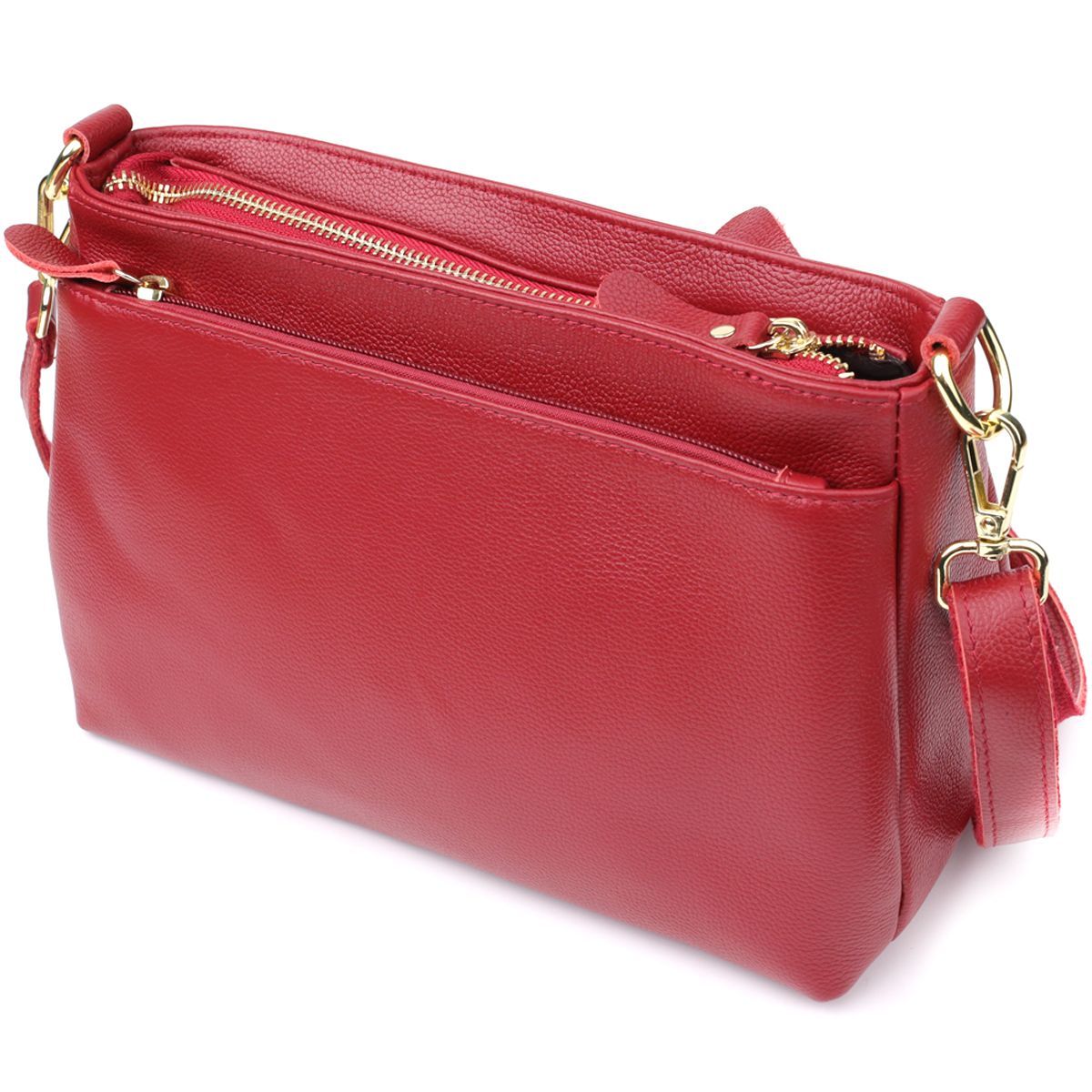 Елегантна сумка жіноча з твердим дном з натуральної шкіри Vintage 22982 червона