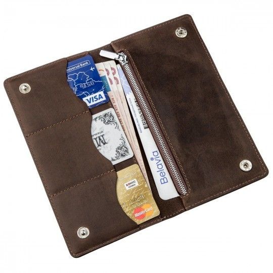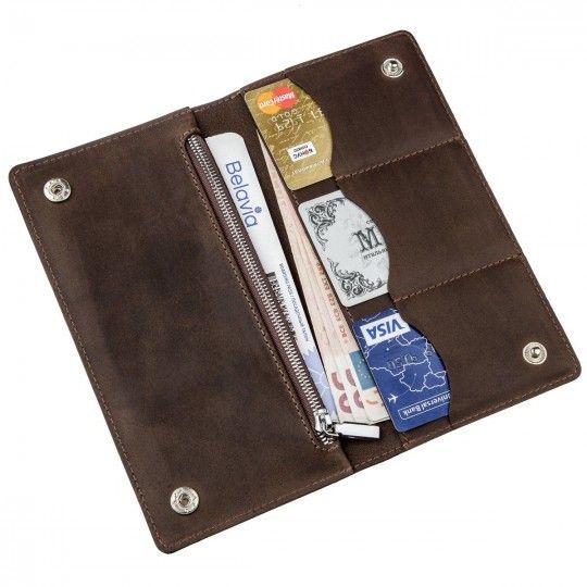 Чоловічий гаманець матовий із натуральної шкіри. Зручно лежить у руці та має простий та функціональний дизайн. Кишенька на блискавці за бажання ви можете використовувати для дрібниці. З таким аксесуаром ваші кошти завжди будуть у безпеці. Купюри в гаманець поміщаються у розгорнутому вигляді. Закривається гаманець на дві кнопки всередині аксесуара. Виріб легко поміститься в сумку та однозначно порадує свого власника.