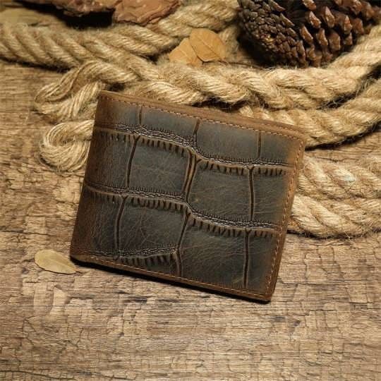 Простий та класичний гаманець із тисненням під екзотичну шкіру. Модель має мінімальний розмір і легко поміститься до кишені штанів. Оригінальний дизайн моделі не залишиться непоміченим. Аксесуар упакований у тканинний чохол. Гаманець буде чудовим та незамінним подарунком для будь-якого чоловіка.