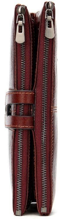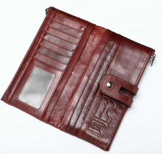 Стильний та місткий жіночий гаманець. У такій моделі багато місця для ваших кредиток, і ви без проблем зможете помістити чимало купюр і монет. Особливістю такої моделі є те, що ви можете регулювати його наповненість за допомогою двох кнопок на лицьовій стороні. Гаманець досить об'ємний. Гаманець прошитий по краях акуратно рудим рядком. Аксесуар виконаний з урахуванням усіх модних тенденцій та побажань клієнтів. Гаманець м'який і приємний на дотик. Бордовий колір ідеальне поєднання розкоші та класики.