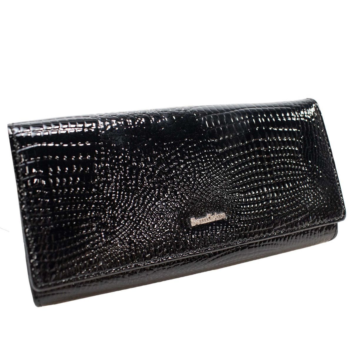 Елегантний жіночий гаманець Semi Line RFID Black (P8228-0) у класичному чорному кольорі — це стильна деталь образу, яка поєднує практичність і розкіш. Лакована натуральна шкіра з виразною тисненою фактурою «під крокодила» виблискує при світлі, додаючи моделі особливої глибини та характеру. Компактна форма та витончене сріблясте лого на лицьовій стороні створюють враження аксесуара преміум класу, який однаково доречно виглядає і в повсякденному, і в діловому стилі.