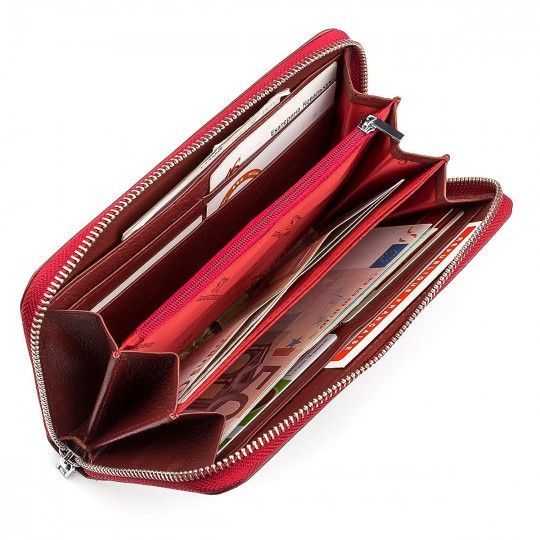 Ця модель призначена для любителів компактних, але дуже містких гаманців. Для банкнот є три великі відділення, завдяки яким можна зручно розділити купюри, а також відсік на блискавці, що закривається. З іншого боку, є кишеня на клямці, призначена для монет. Особливо сподобається всім красивий червоний колір та зручне внутрішнє розташування.