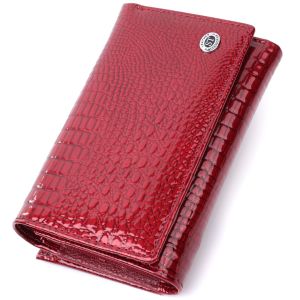 Гаманець жіночий три складення з лакованої фактурної натуральної шкіри ST Leather 22708 червоний