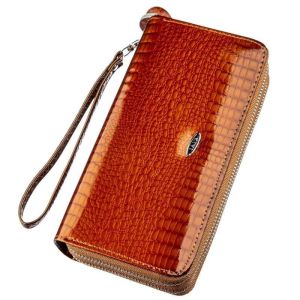 Гаманець жіночий з екошкіри на дві блискавки KIVI Хамелеон 19020 коричневий