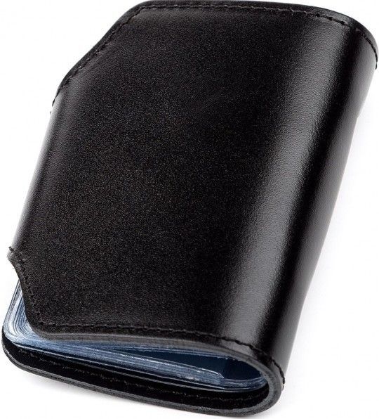 Стильна візитниця з натуральної шкіри, м'якої та приємної на дотик. Аксесуар прошитий міцною чорною ниткою, що чудово вписується в дизайн та продовжує термін служби виробу.