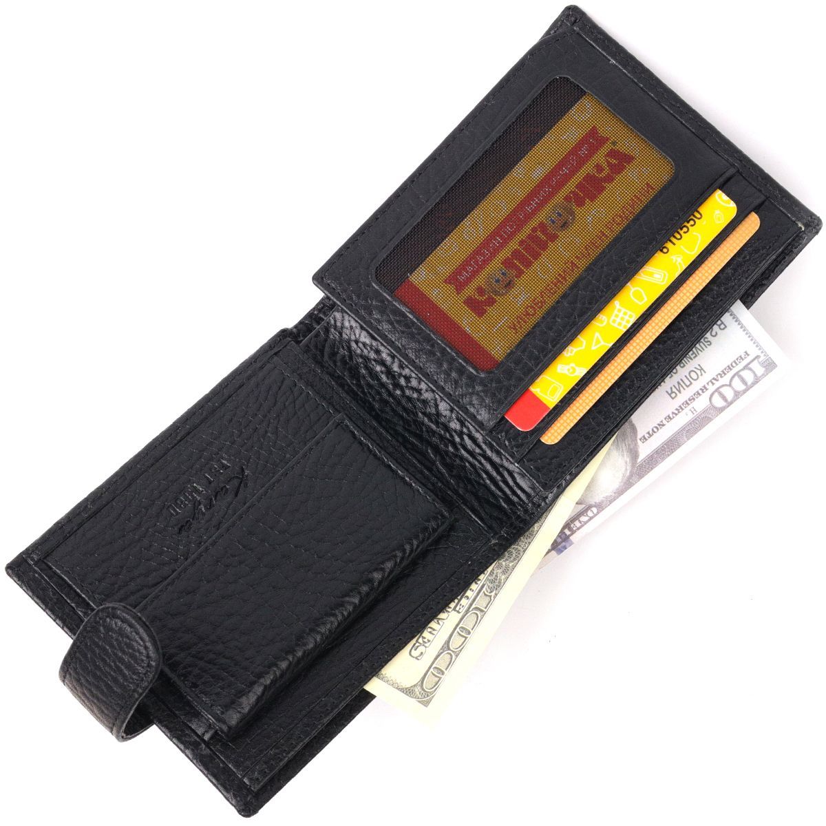 Класичний чоловічий гаманець з хлястиком із натуральної шкіри KARYA 21079 чорний