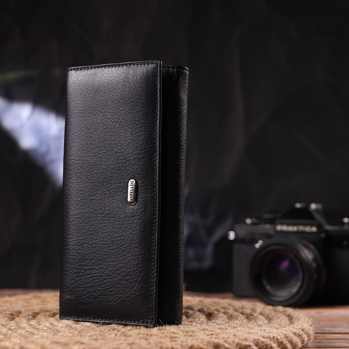 Класичний жіночий гаманець із натуральної шкіри Canpellini 21657 чорний