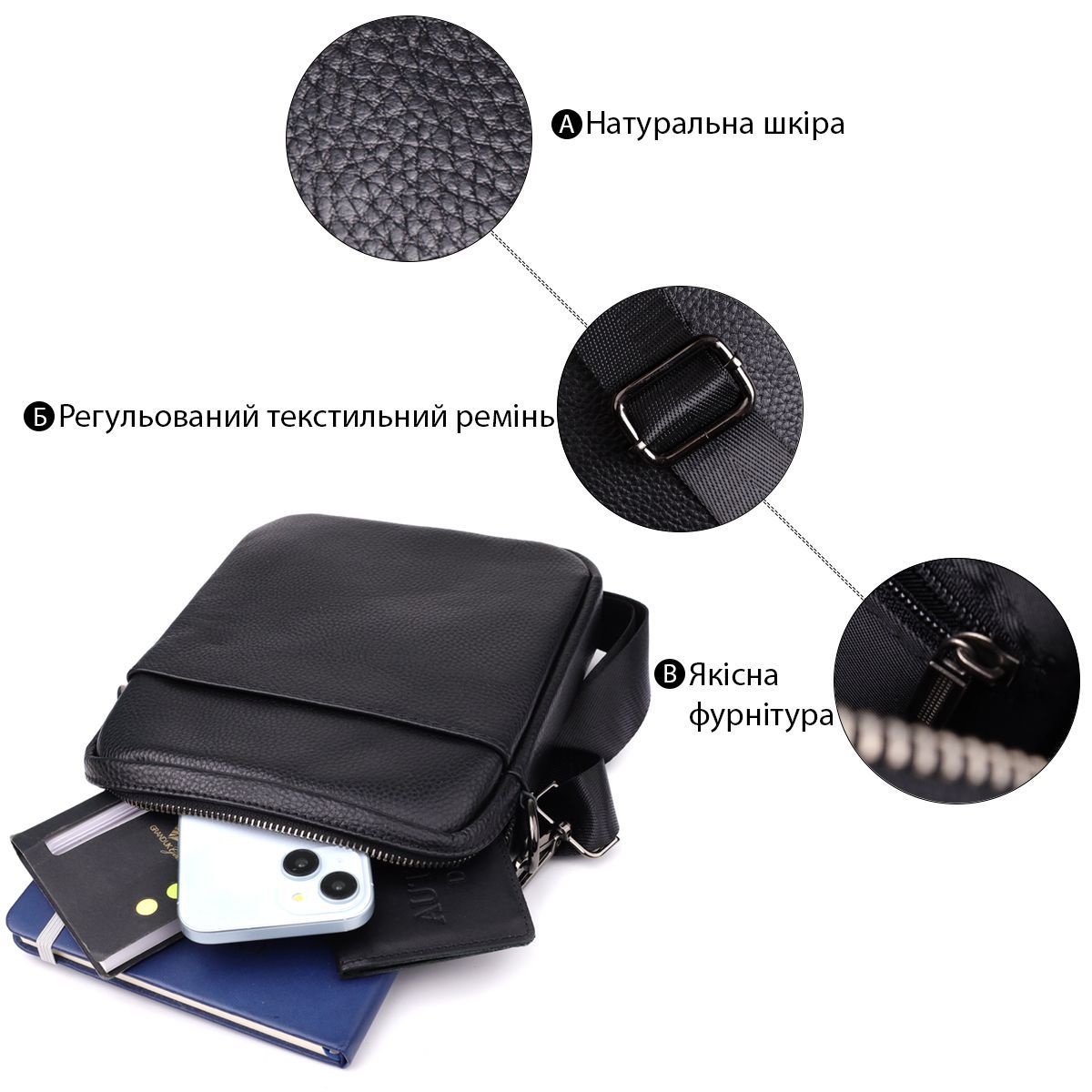 Чоловіча шкіряна сумка через плече – практичний та універсальний аксесуар для повсякденного використання. Виконана з натуральної шкіри, що поєднує міцність та стиль.