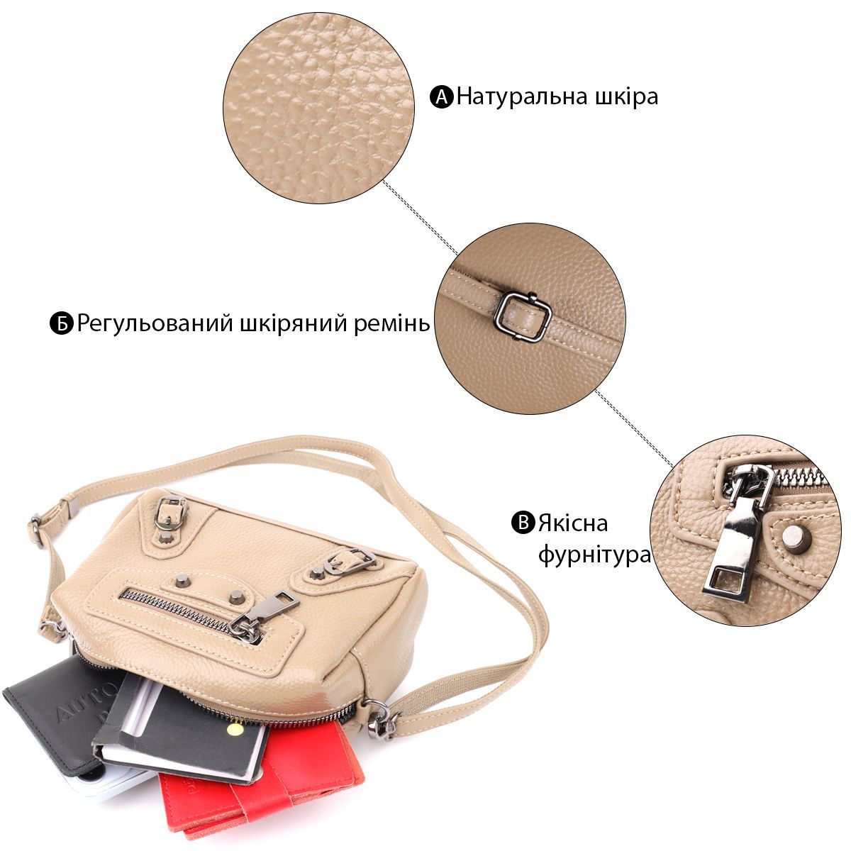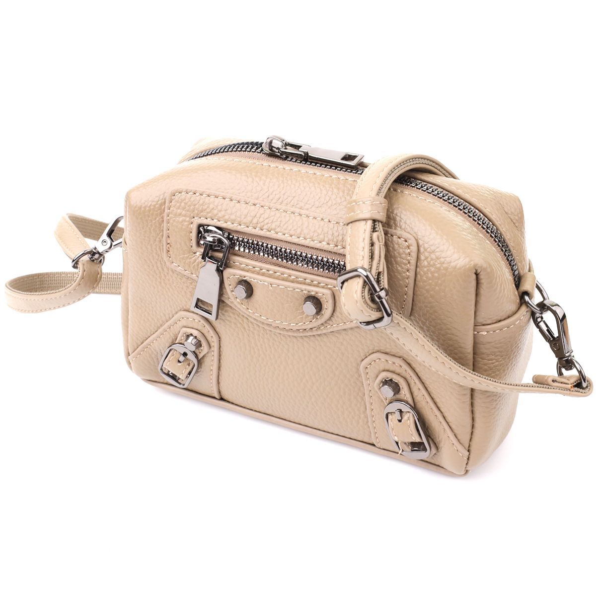 Компактна сумка для жінок з натуральної шкіри Vintage 22924 бежева