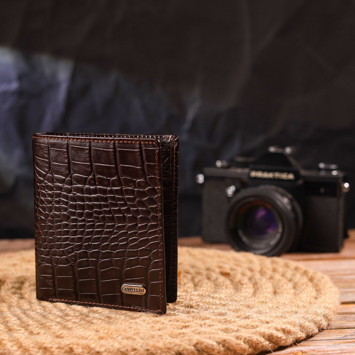 Компактне чоловіче портмоне із натуральної фактурної шкіри Canpellini 21496 коричневе