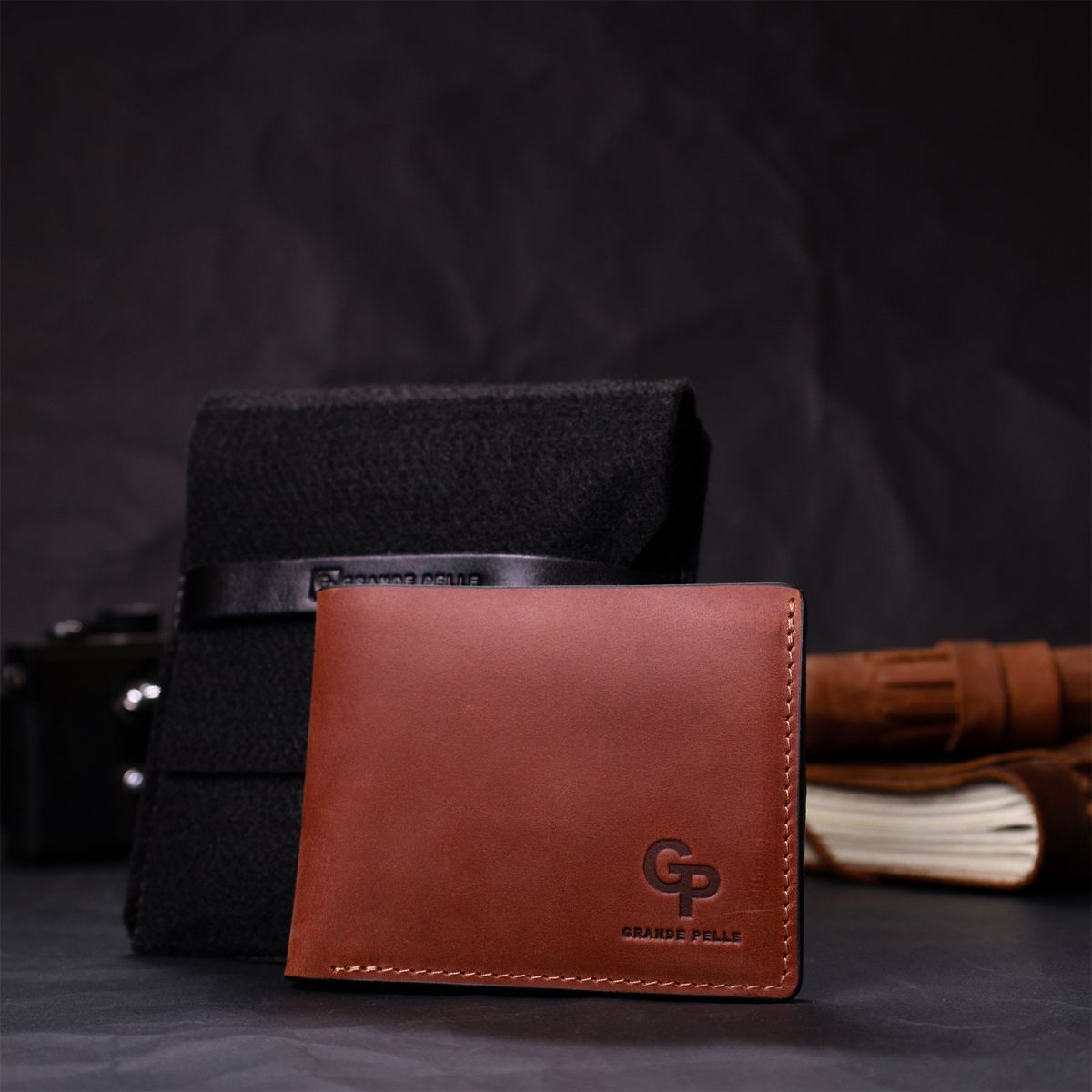 Компактний гаманець із натуральної шкіри без застібки Grande Pelle 11661 коричневий