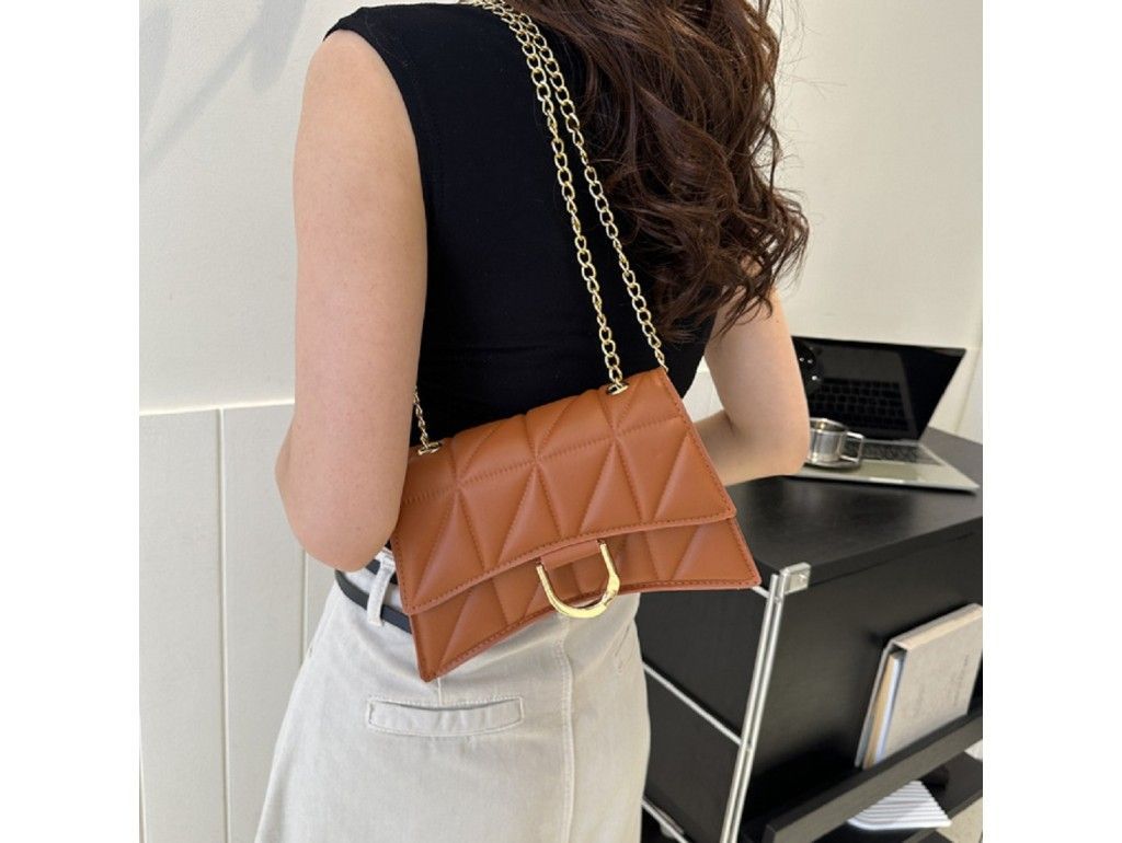 Кросбоді вигнутої форми в еко-шкірі з геометричним візерунком Lilly P4-378C коричнева