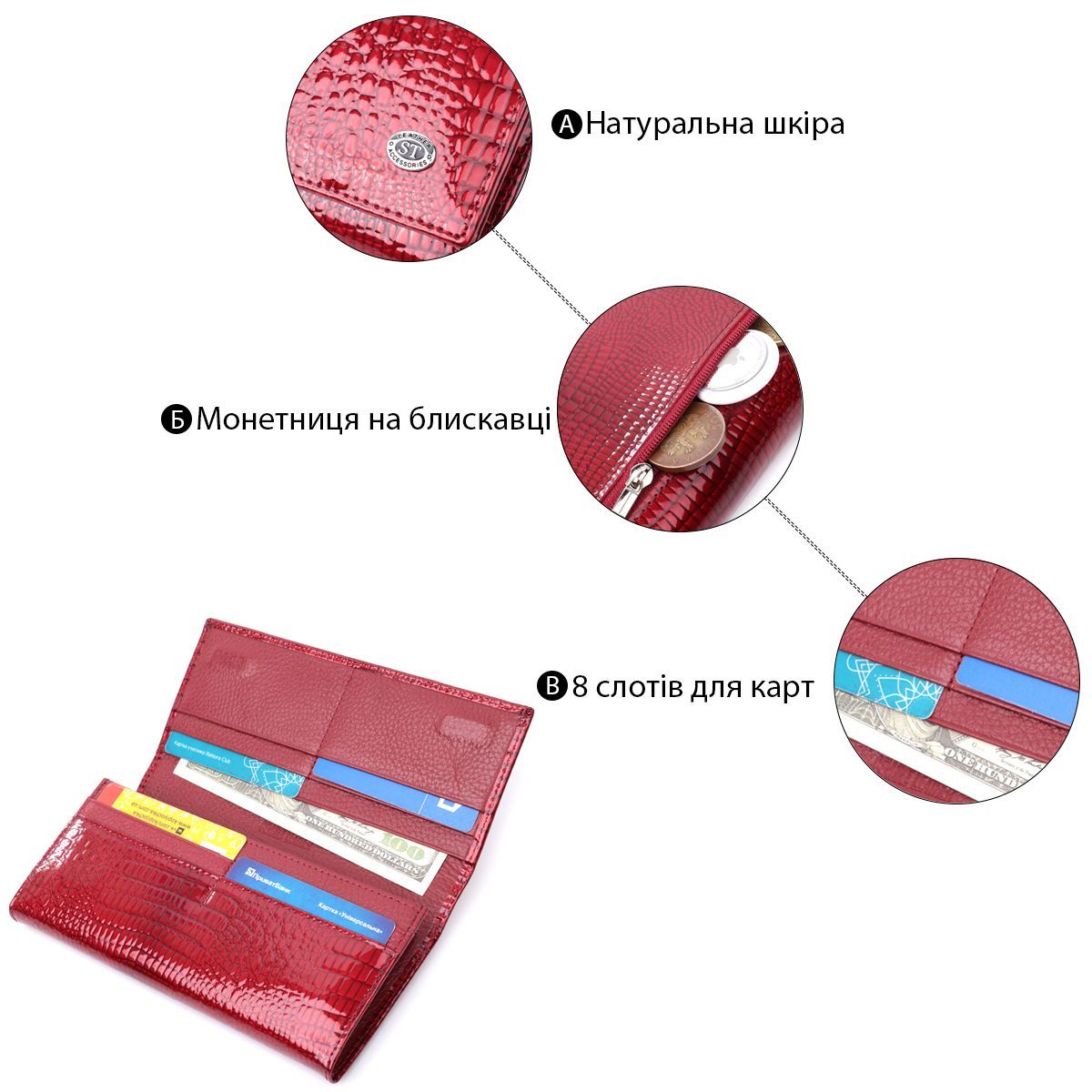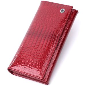 Лакований жіночий гаманець з фактурою під рептилію з натуральної шкіри ST Leather 22717 червоний