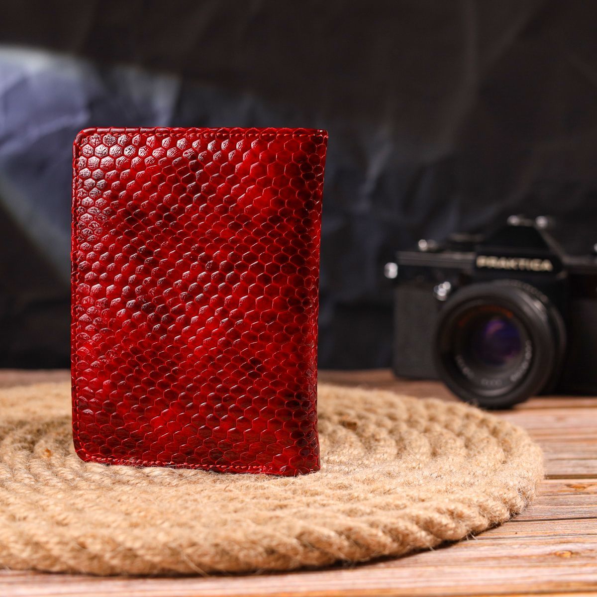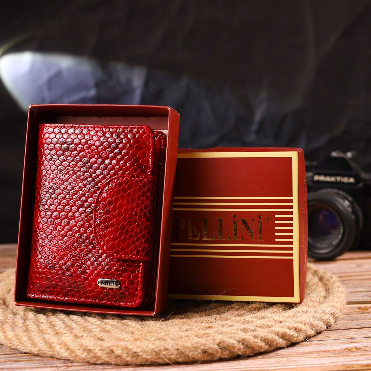 Лакований жіночий гаманець з натуральної шкіри з тисненням під змію Canpellini 21682 червоний