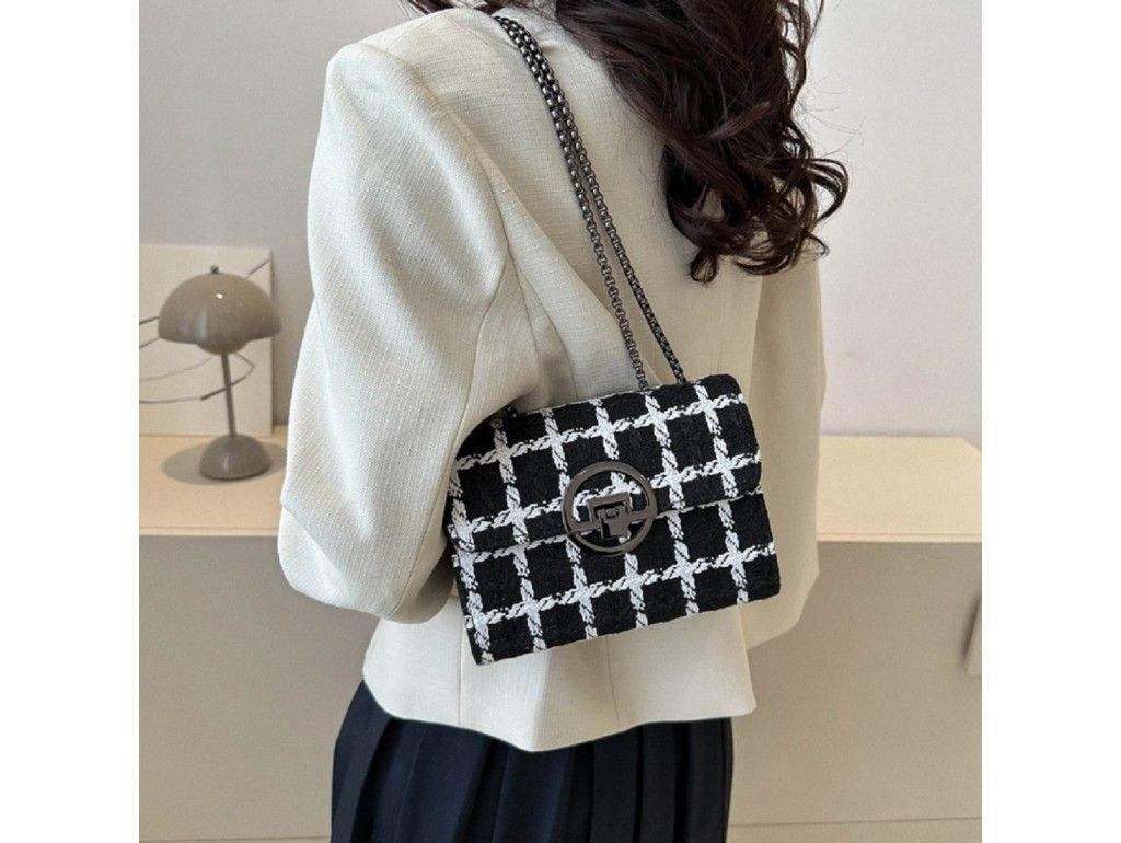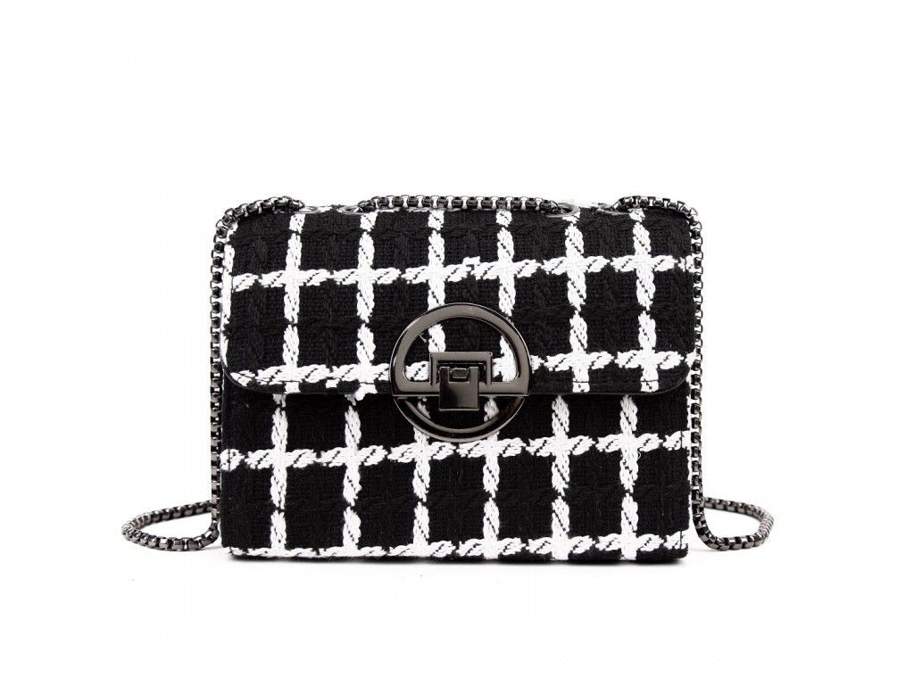 Маленька твідова сумочка на ланцюжку Lilly P2-1520AW чорно-біла