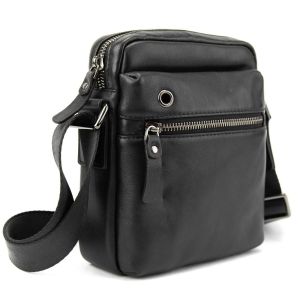 Месенджер в гладкій шкірі чорний Tiding Bag 8718A чорний