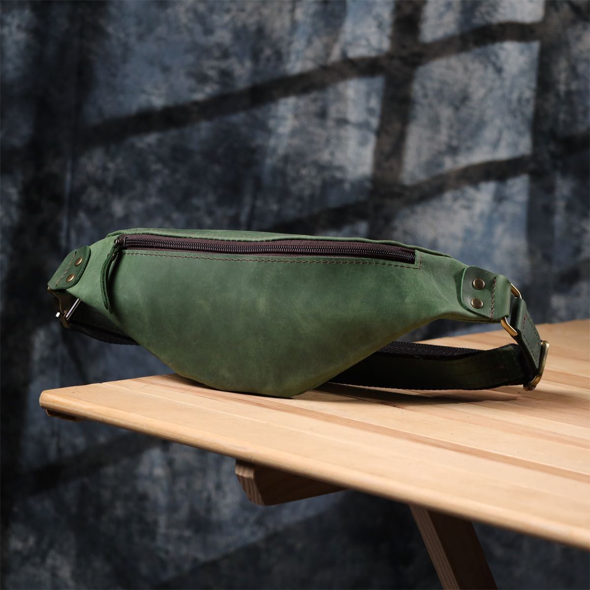 Містка бананка для чоловіків з натуральної вінтажної шкіри Shvigel 23133 зелена