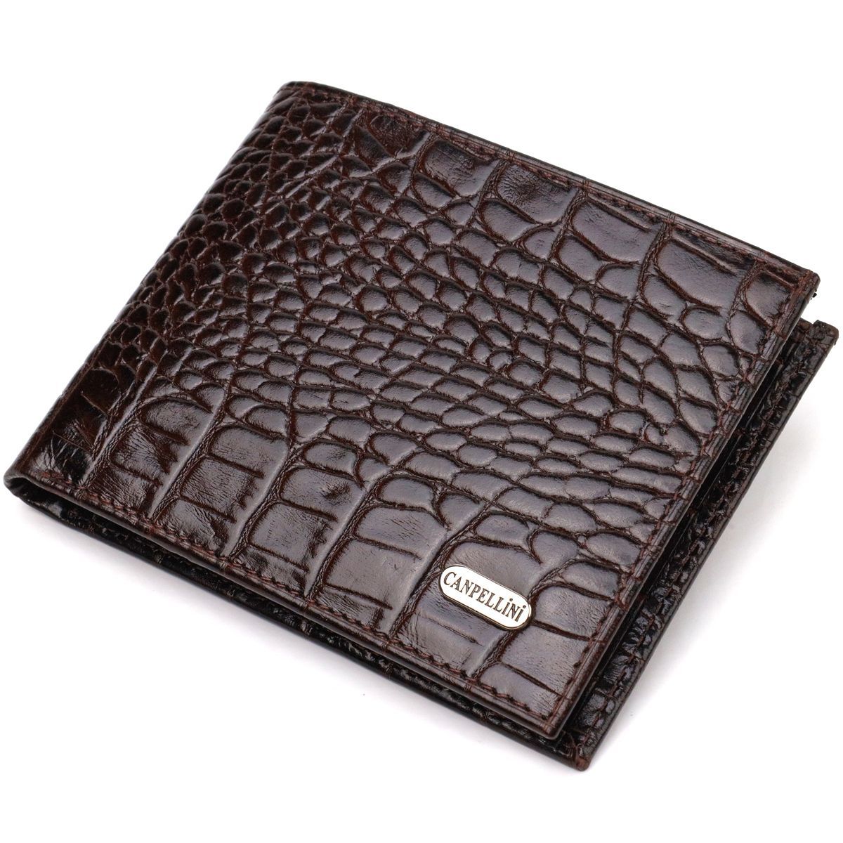 Містке чоловіче портмоне з натуральної шкіри з тисненням під крокодила Canpellini 21870 коричневий