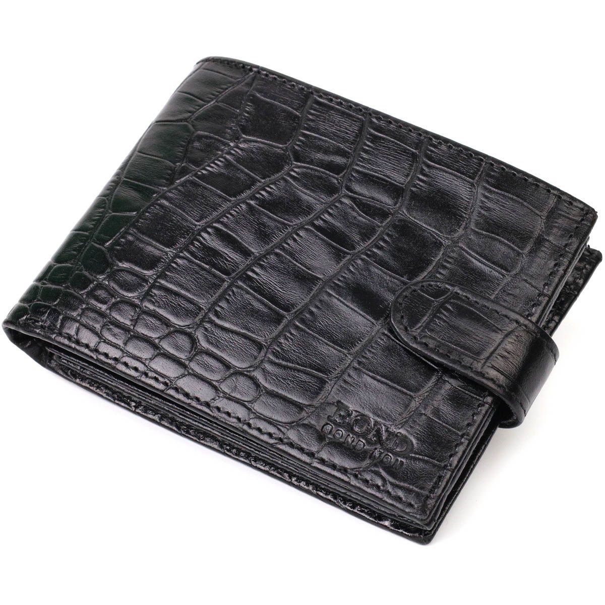 Місткий гаманець середнього розміру для чоловіків з натуральної шкіри з тисненням під крокодила BOND 22000 чорний