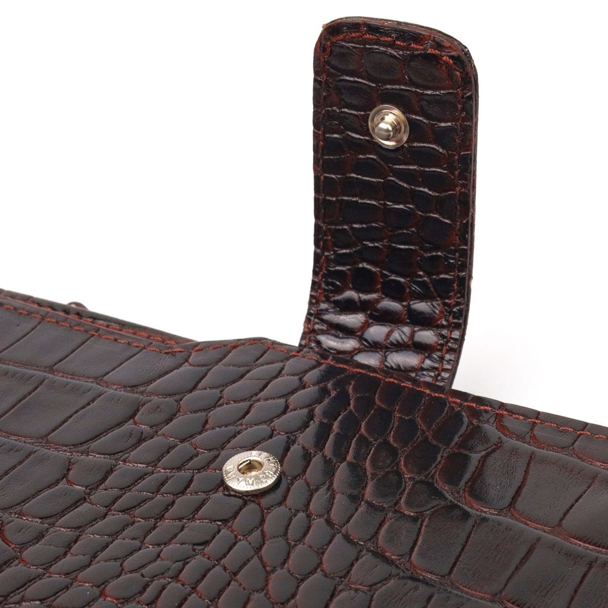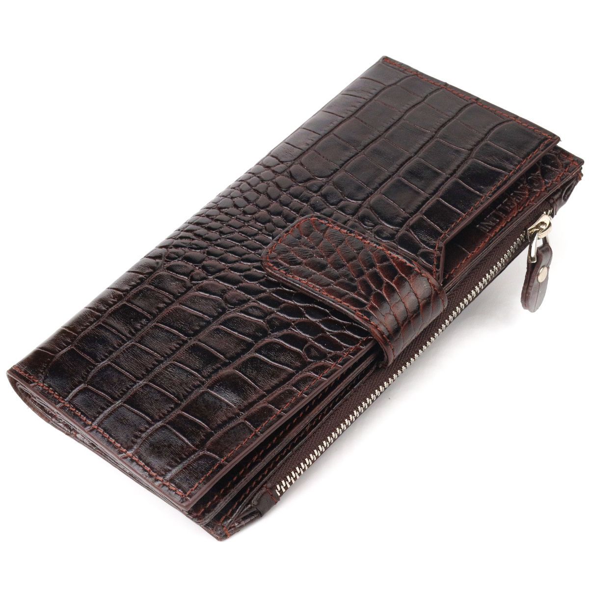Місткий гаманець з натуральної шкіри з тисненням під крокодила Canpellini 21637 коричневий
