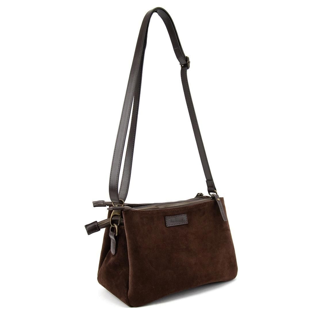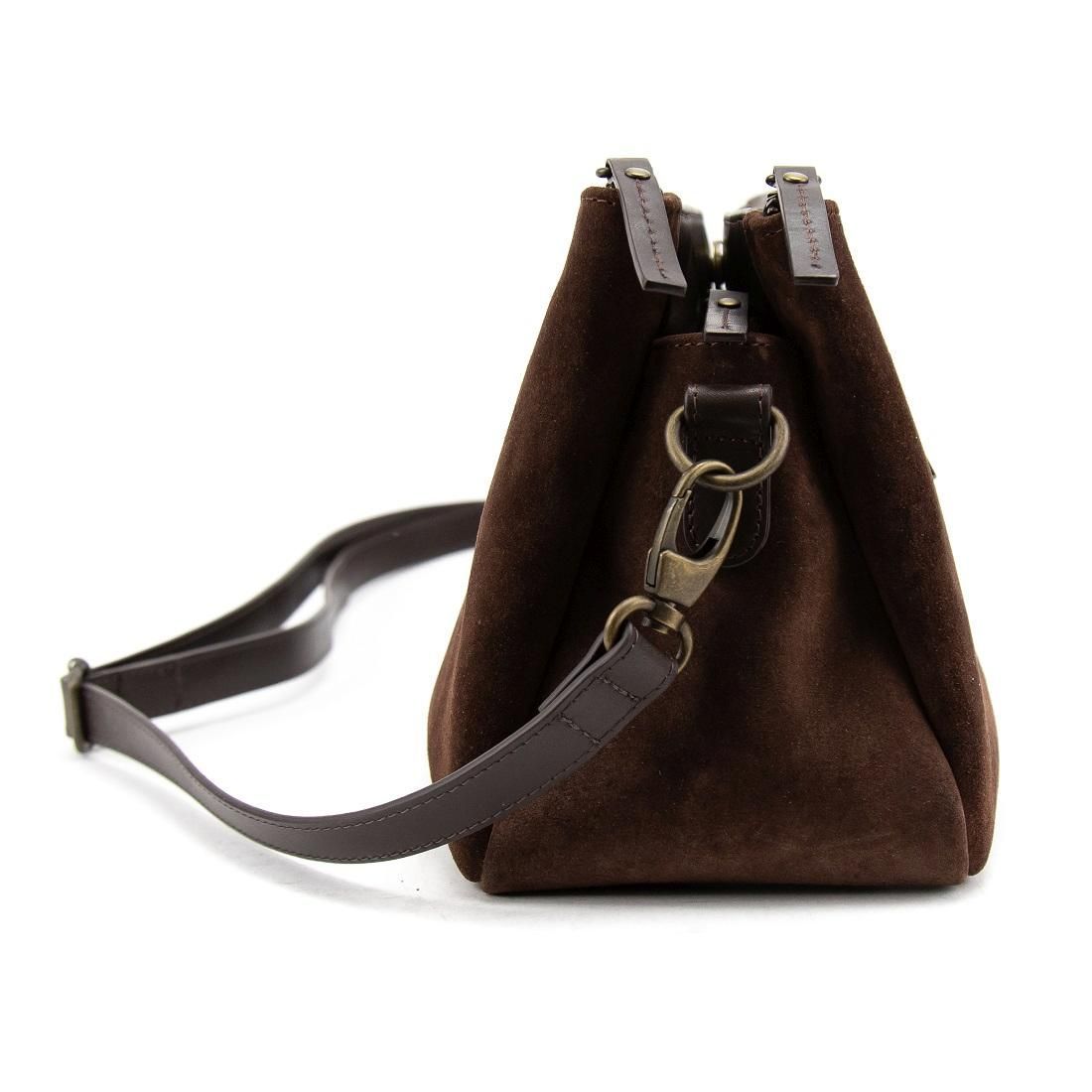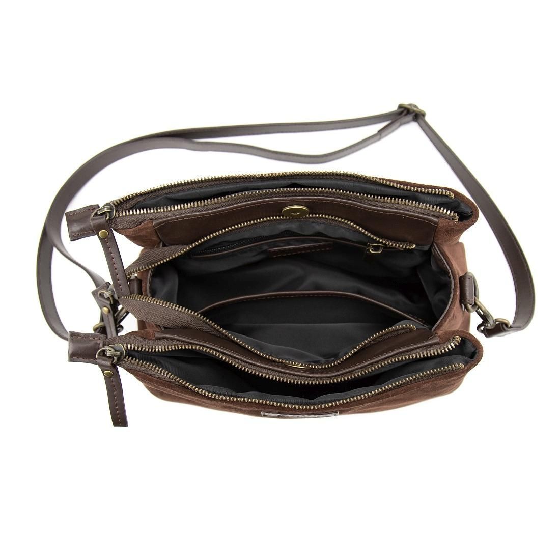 Елегантна жіноча сумка кросбоді з натуральної замші — поєднання витонченого дизайну та практичності на кожен день. Компактна модель розміром 27×24×11,5 см має три окремі відділи на блискавках, де зручно розмістити всі необхідні речі. Усередині — текстильна підкладка та кишеньки на змійці для дрібних предметів.