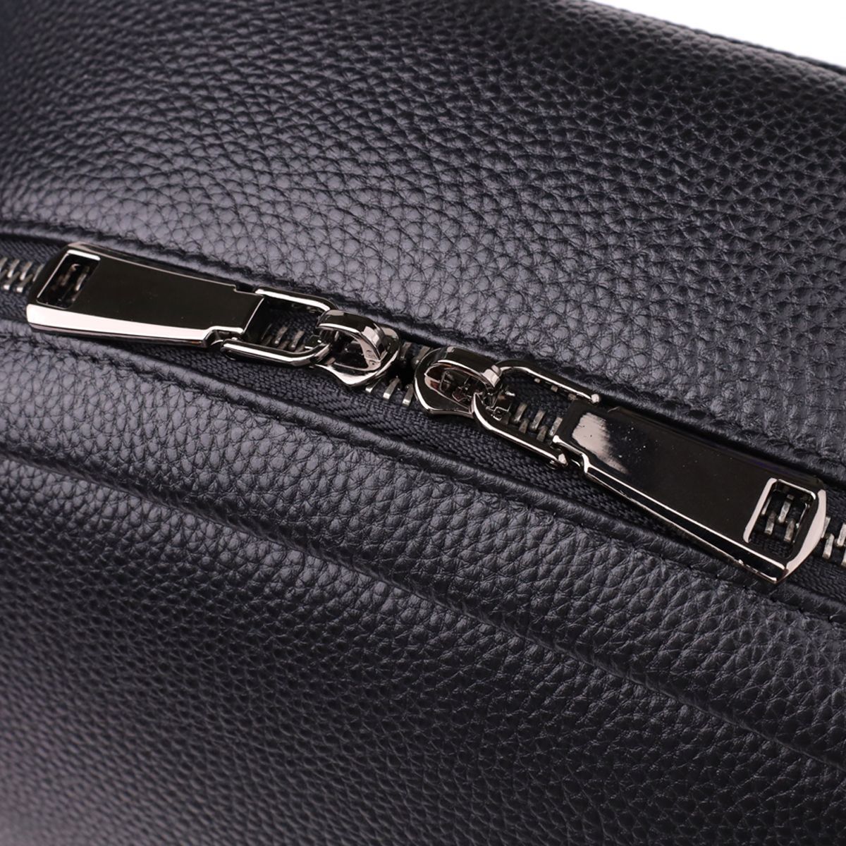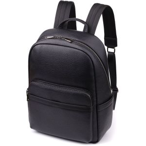 Чоловічий шкіряний рюкзак виконаний з натуральної шкіри з виразною текстурою та оснащений одним основним відділенням на блискавці з двома бігунками, що забезпечує зручний доступ та місткість. Усередині знаходяться дві відкриті кишені для зручної організації дрібних речей. На лицьовій стороні розташована накладна кишеня на блискавці, яка підходить для швидкого доступу до необхідних предметів. Для комфортного перенесення передбачена шкіряна ручка, м'які лямки, що регулюються, і ортопедична спинка, яка знижує навантаження на хребет при тривалому носінні. Фурнітура виконана в кольорі темного срібла, підкреслюючи стиль та елегантність моделі. Цей рюкзак стане надійним та зручним супутником у повсякденному житті.