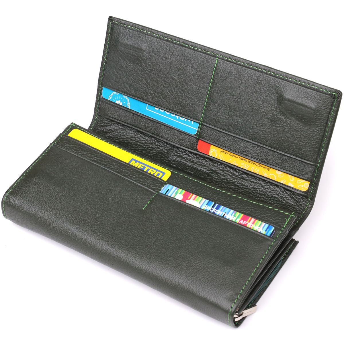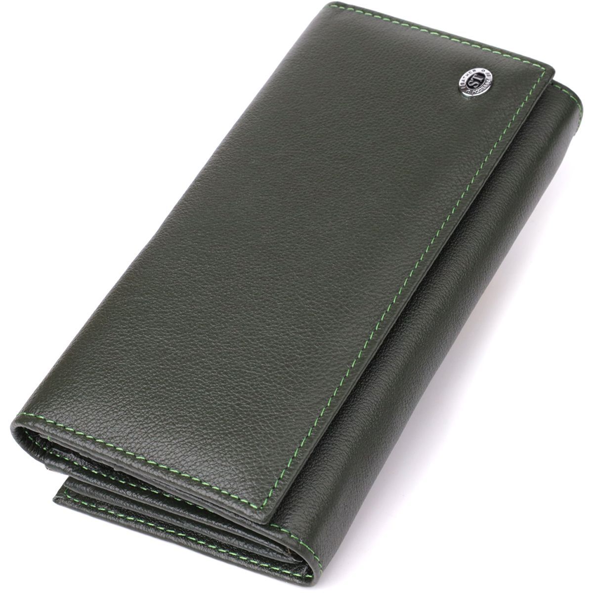 Місткий жіночий гаманець на магнітах із натуральної шкіри ST Leather 23115 зелений