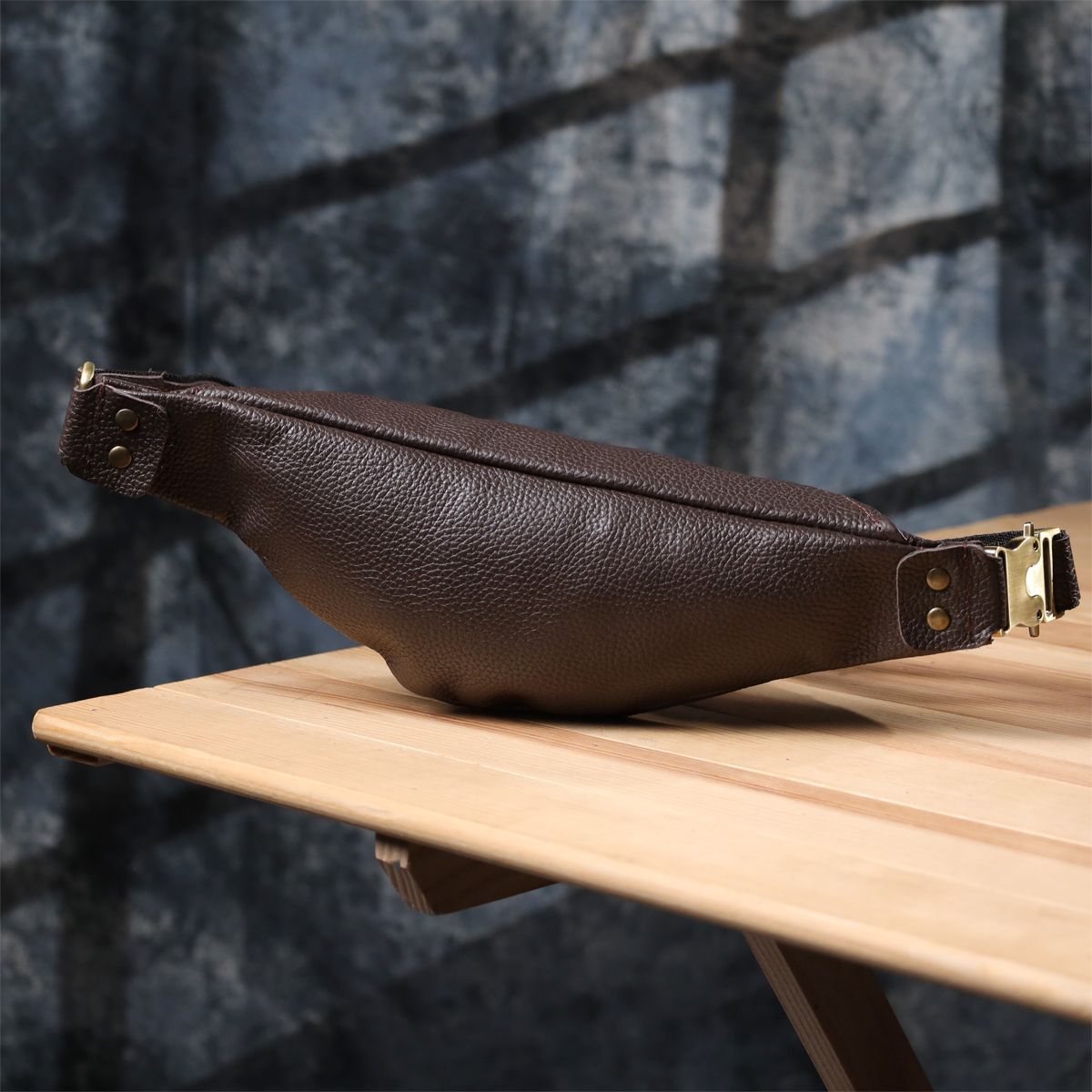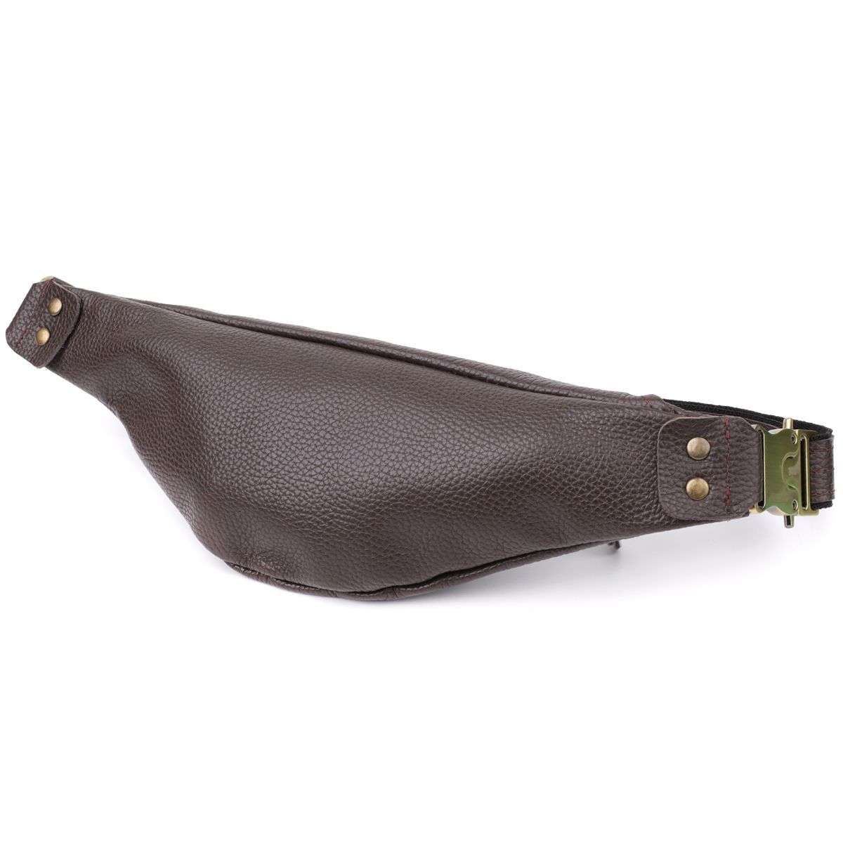 Модна сумка бананка для чоловіків із зернистої натуральної шкіри Shvigel 23137 коричнева