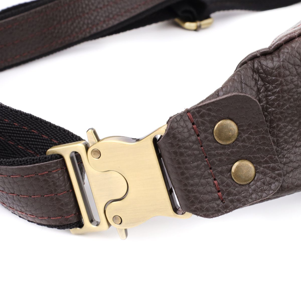 Компактна, але містка: основне відділення на блискавці вміщує документи, смартфон, ключі та гаманець. Регульований ремінь зі шкіри та міцної тканини дозволяє зручно носити аксесуар на поясі або через груди, залишаючи вільними руки.